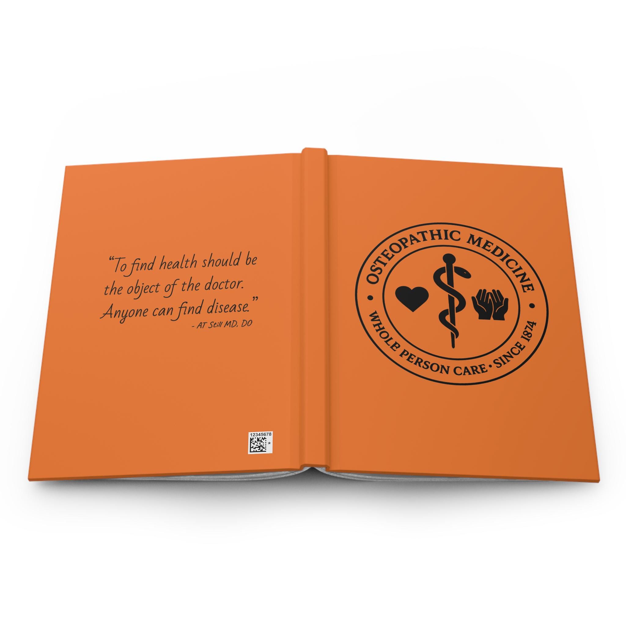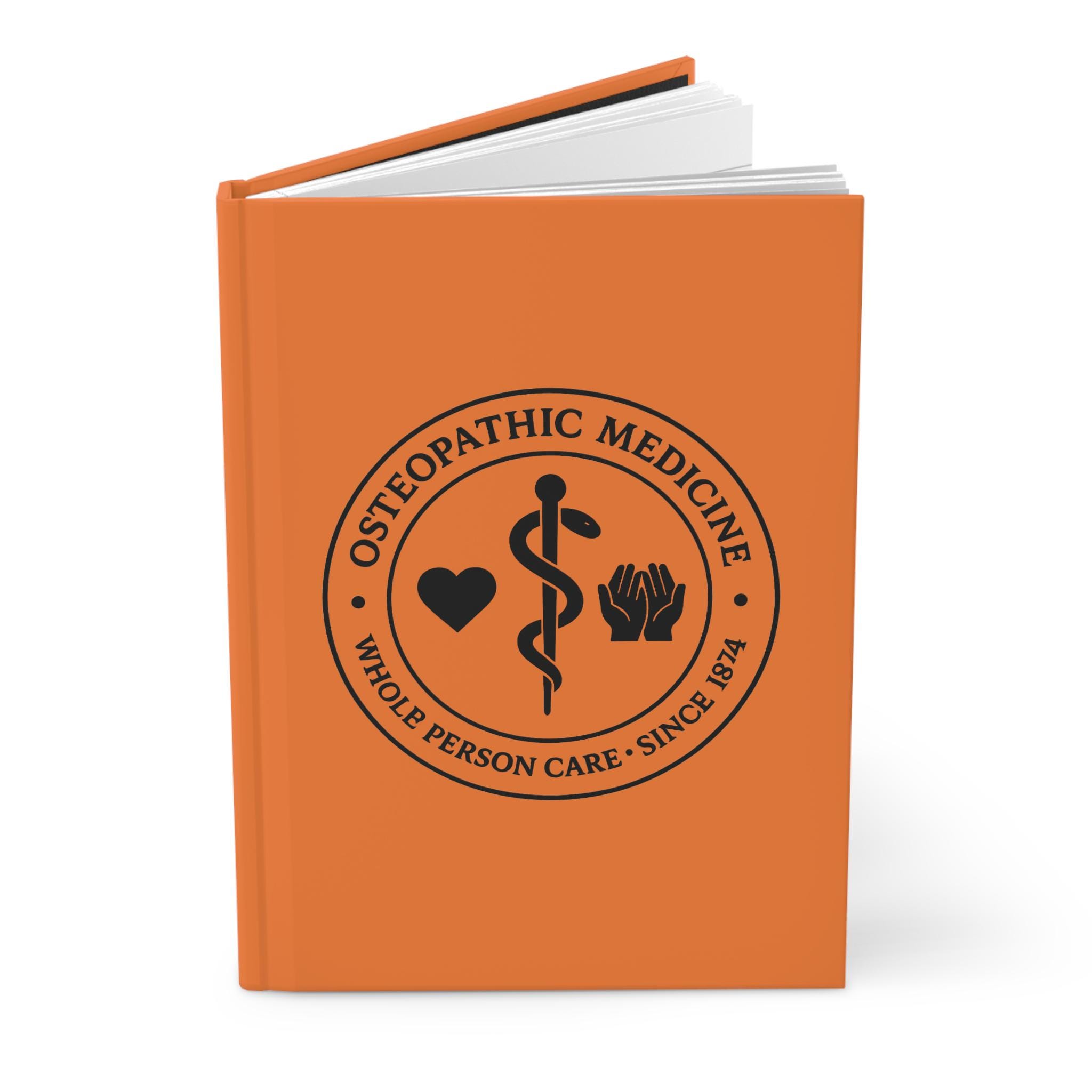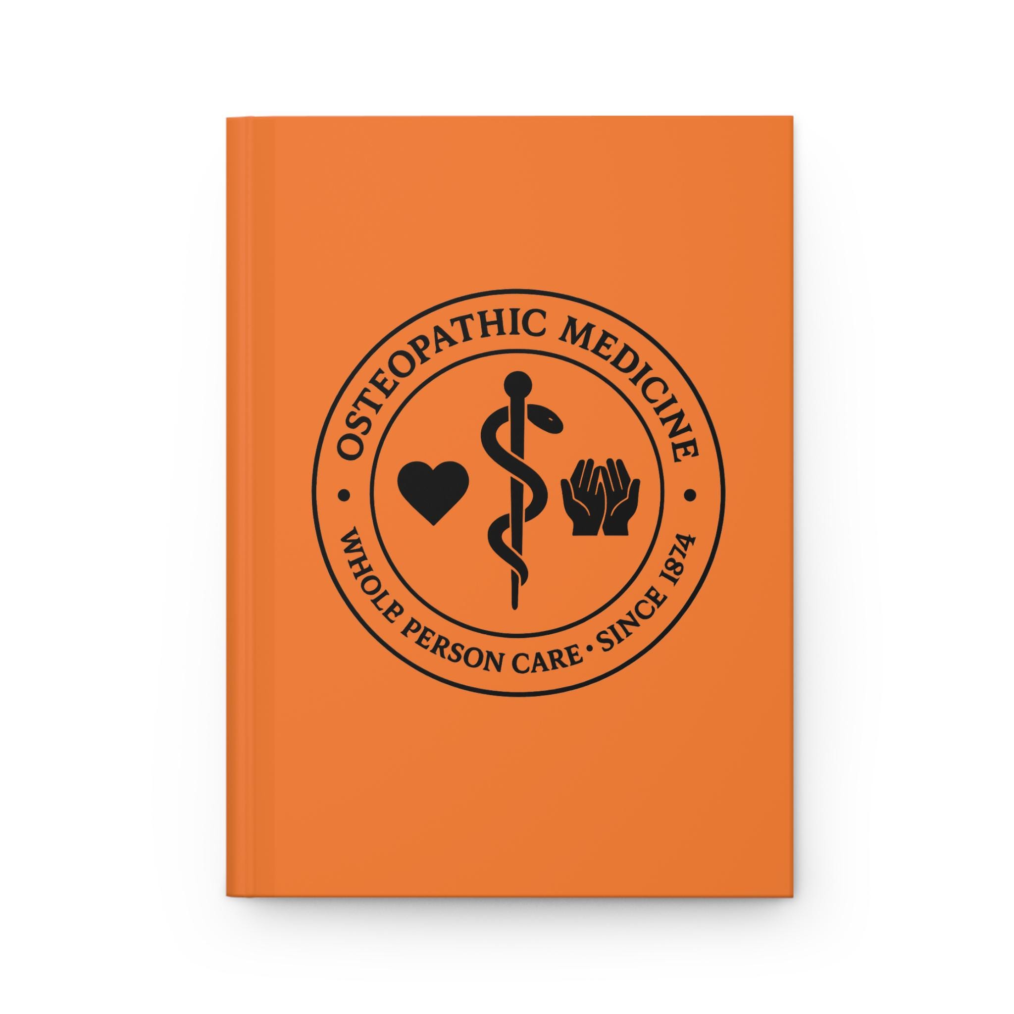 Osteopathic Medicine Seal Hardcover Journal | Quote, Asclepius Emblem Orange