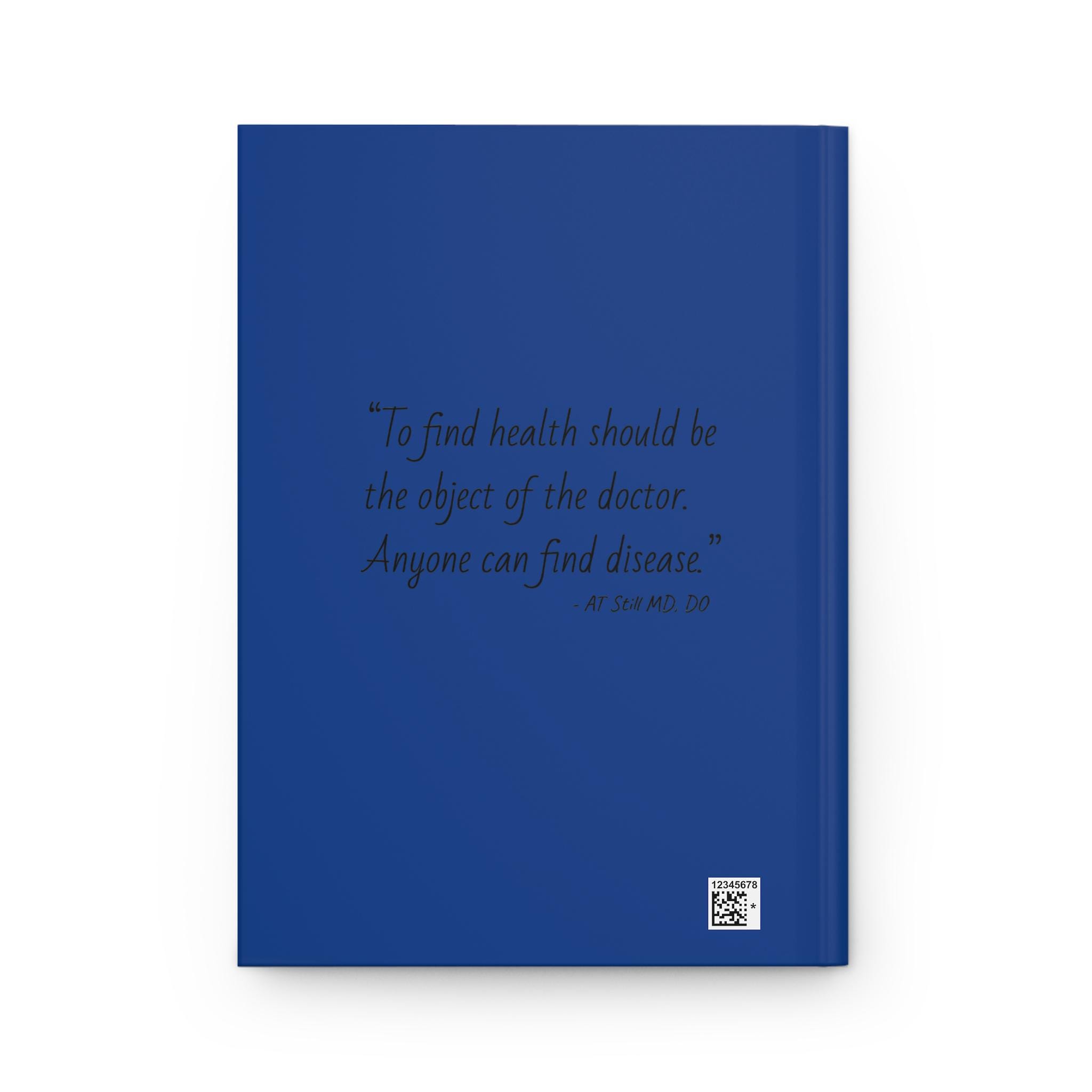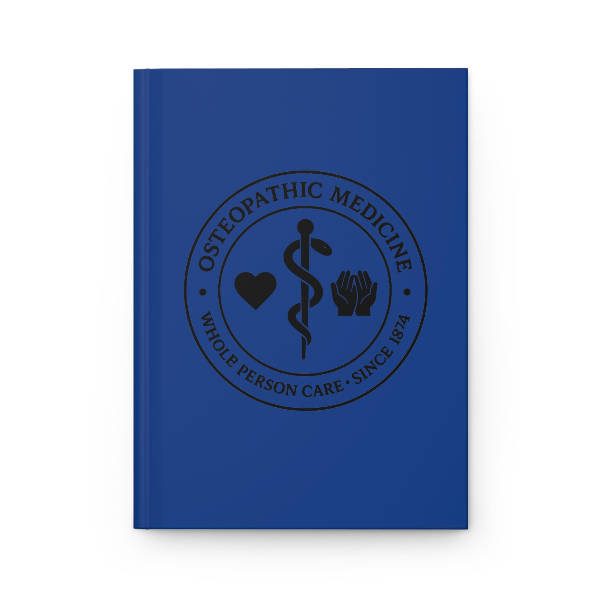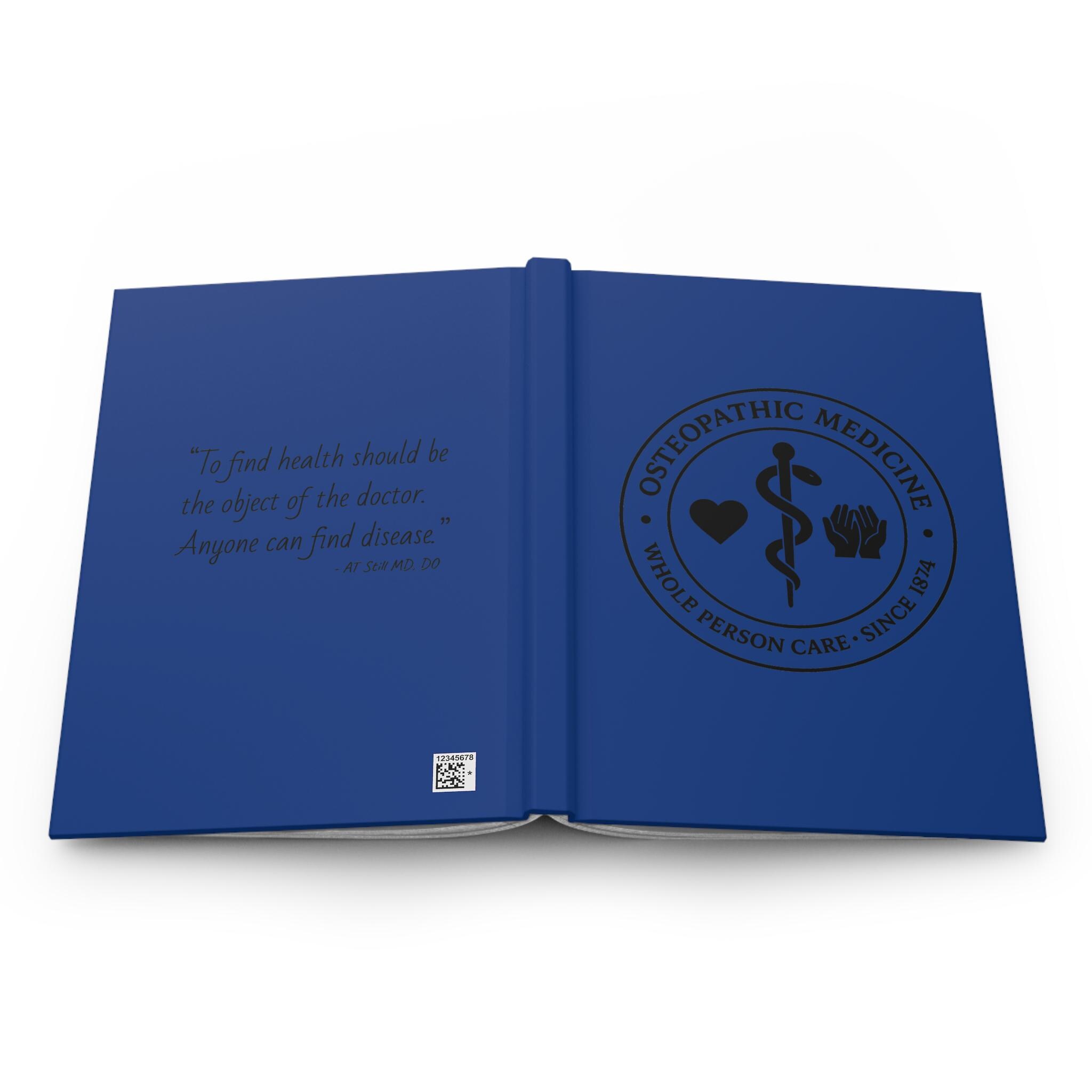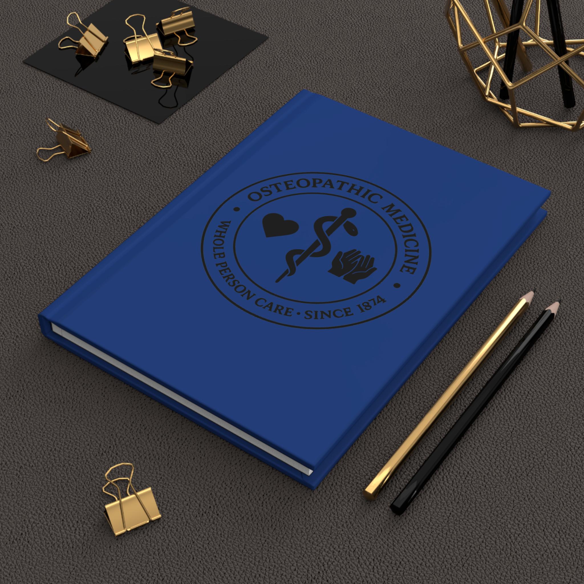Osteopathic Medicine Seal Hardcover Journal | Quote, Asclepius Emblem Blue