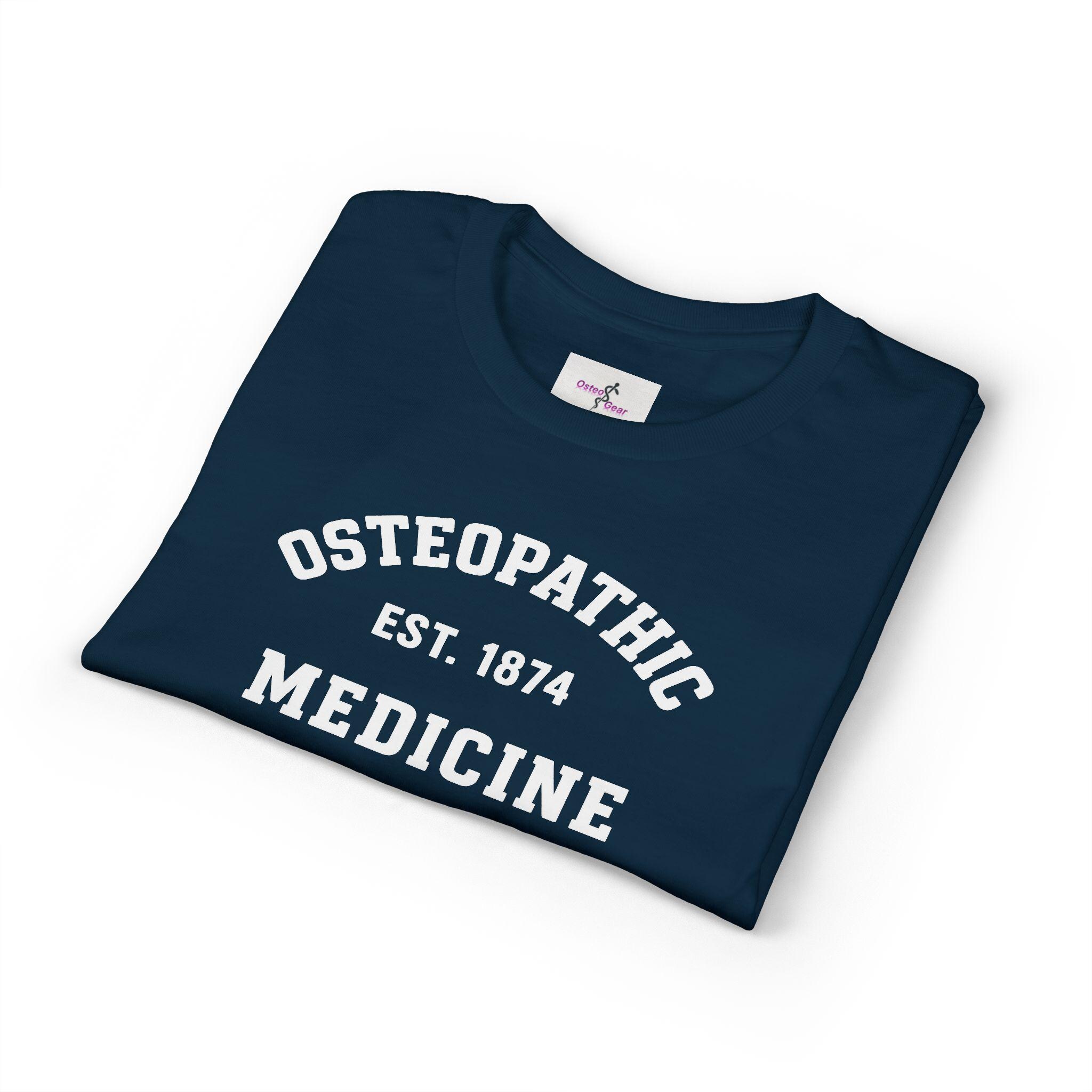 Osteopathic Medicine EST. 1874 T-Shirt | College Vintage Medical Shirt | White lettering