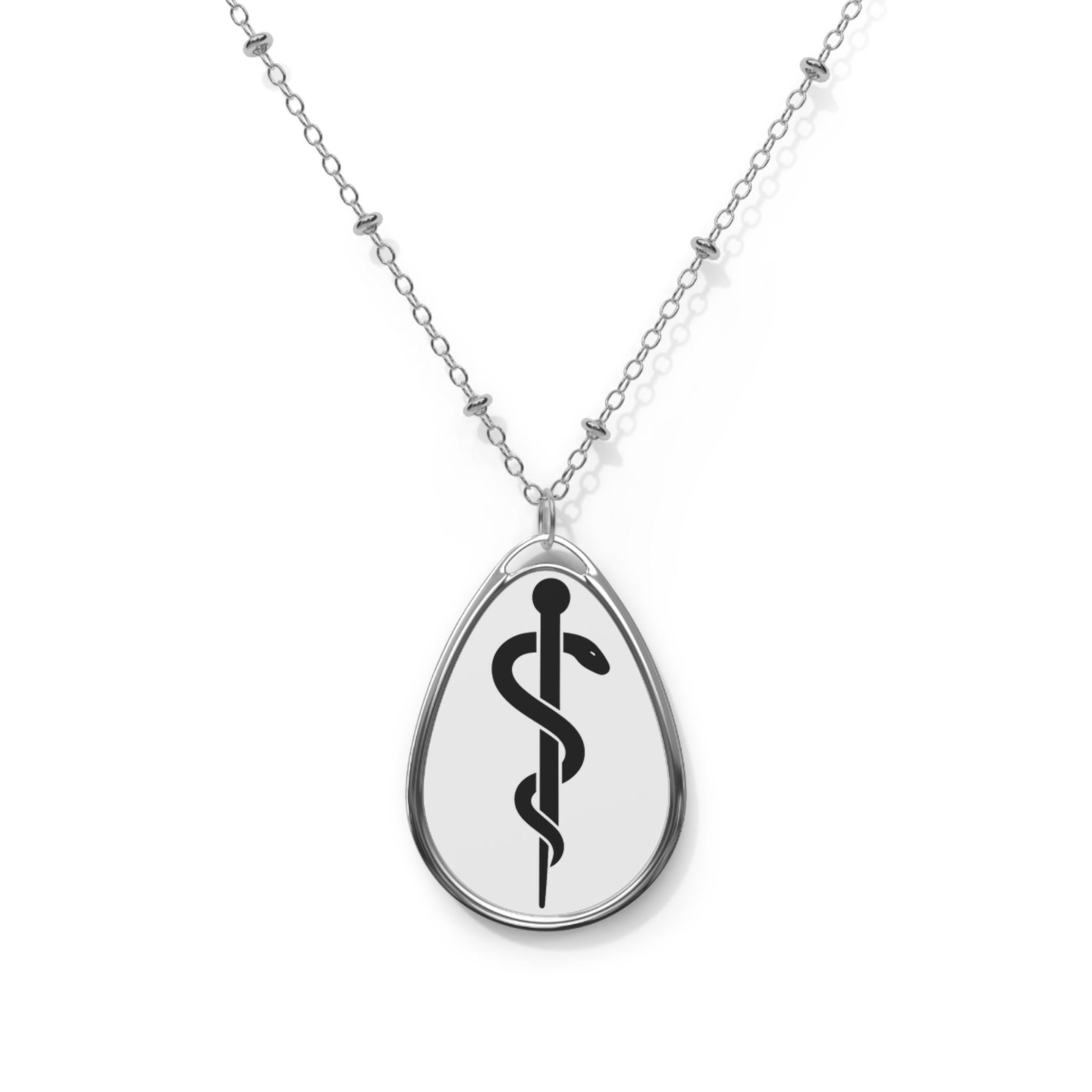 Asclepius Medical Symbol Oval Necklace | Doctor Physician Pendant