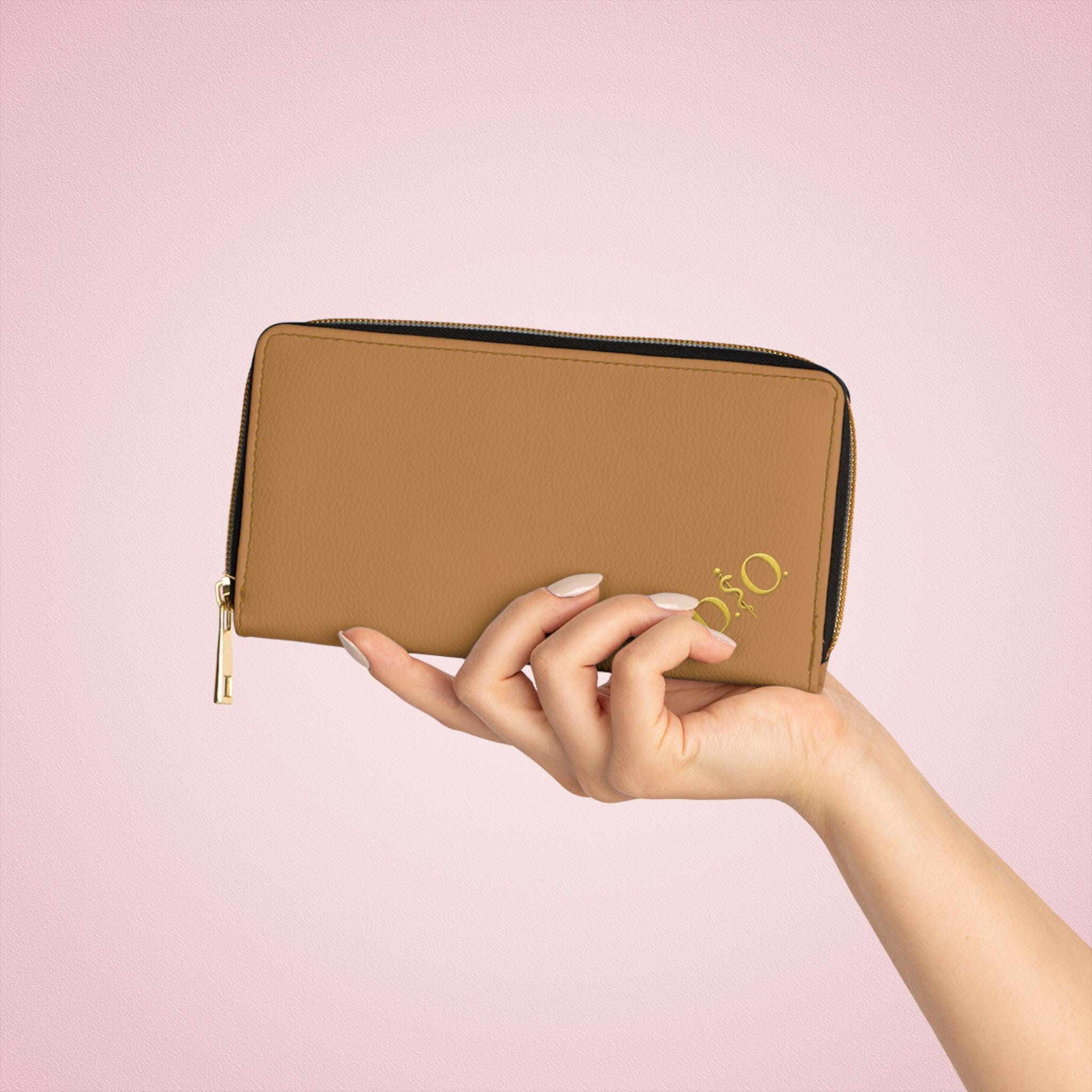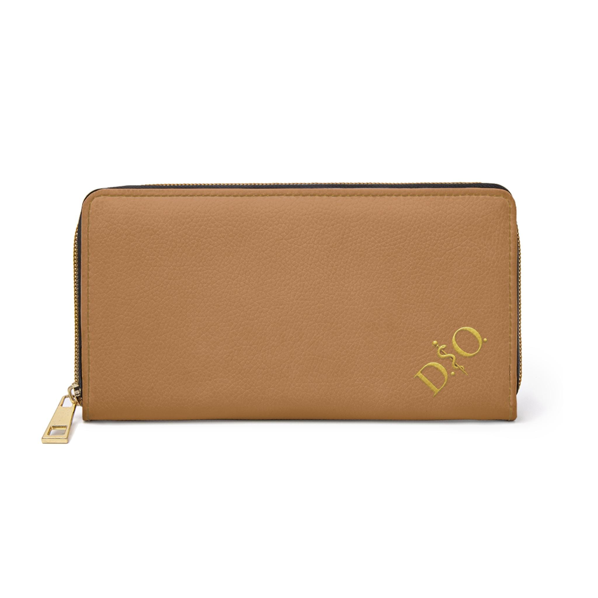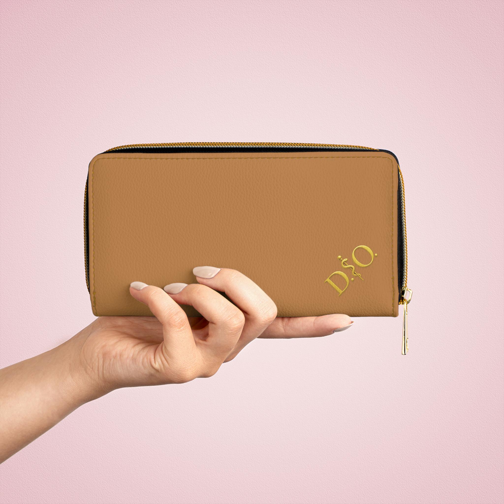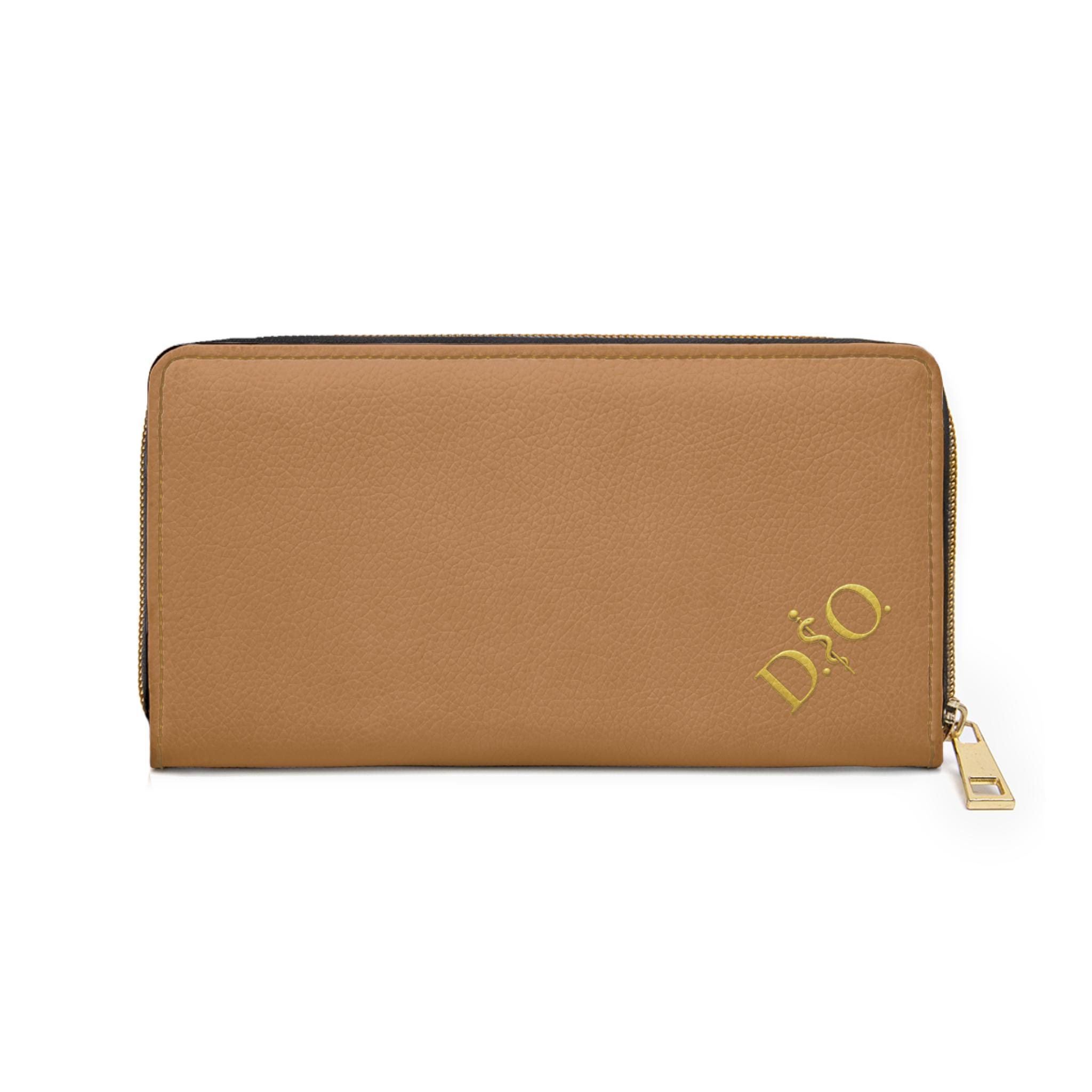 This light brown leather zipper wallet carries a refined medical-osteopathic presence with a gold DO Asclepius monogram in the corner that gives it a designer air. Clean, polished, and quietly authoritative, it slides into a clinician’s daily rhythm — from morning rounds to after-hours note-taking. The gold emblem pops against the warm brown surface, a subtle nod to professional pride without being loud. It lives in lab coats and scrub pockets, but also in briefcases and tote bags, bridging clinical work with everyday errands. Thoughtful pockets keep cash, cards, coins, and a slim checkbook organized. The smooth PU leather and shimmering gold-thread stitching add tactile and visual luxury, while a sturdy nylon zipper and alloy hardware stand up to constant use. For osteopaths, medical students, and healthcare pros who prefer understated, professional accessories, this wallet feels familiar, respected, and made to travel through long shifts and meaningful patient moments.