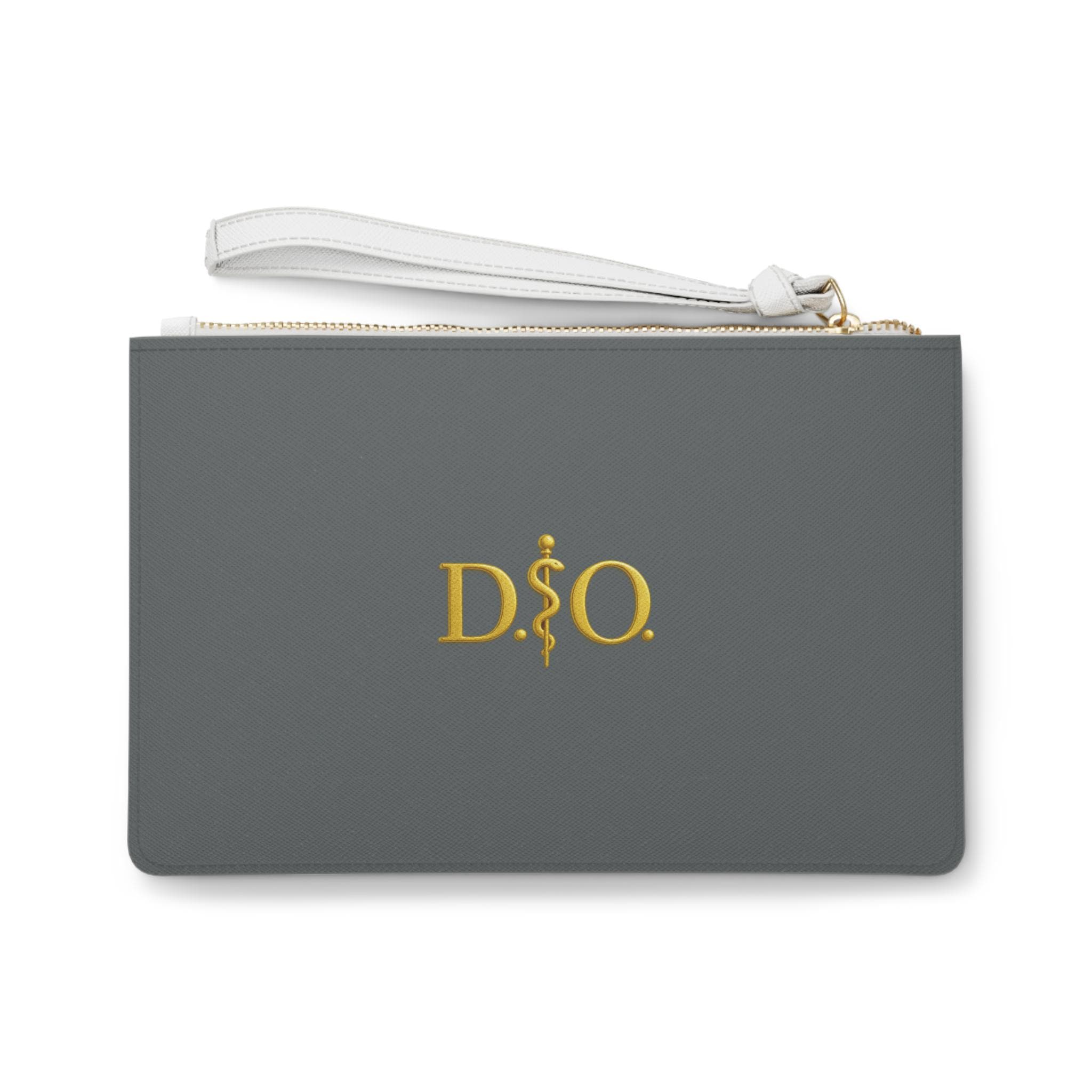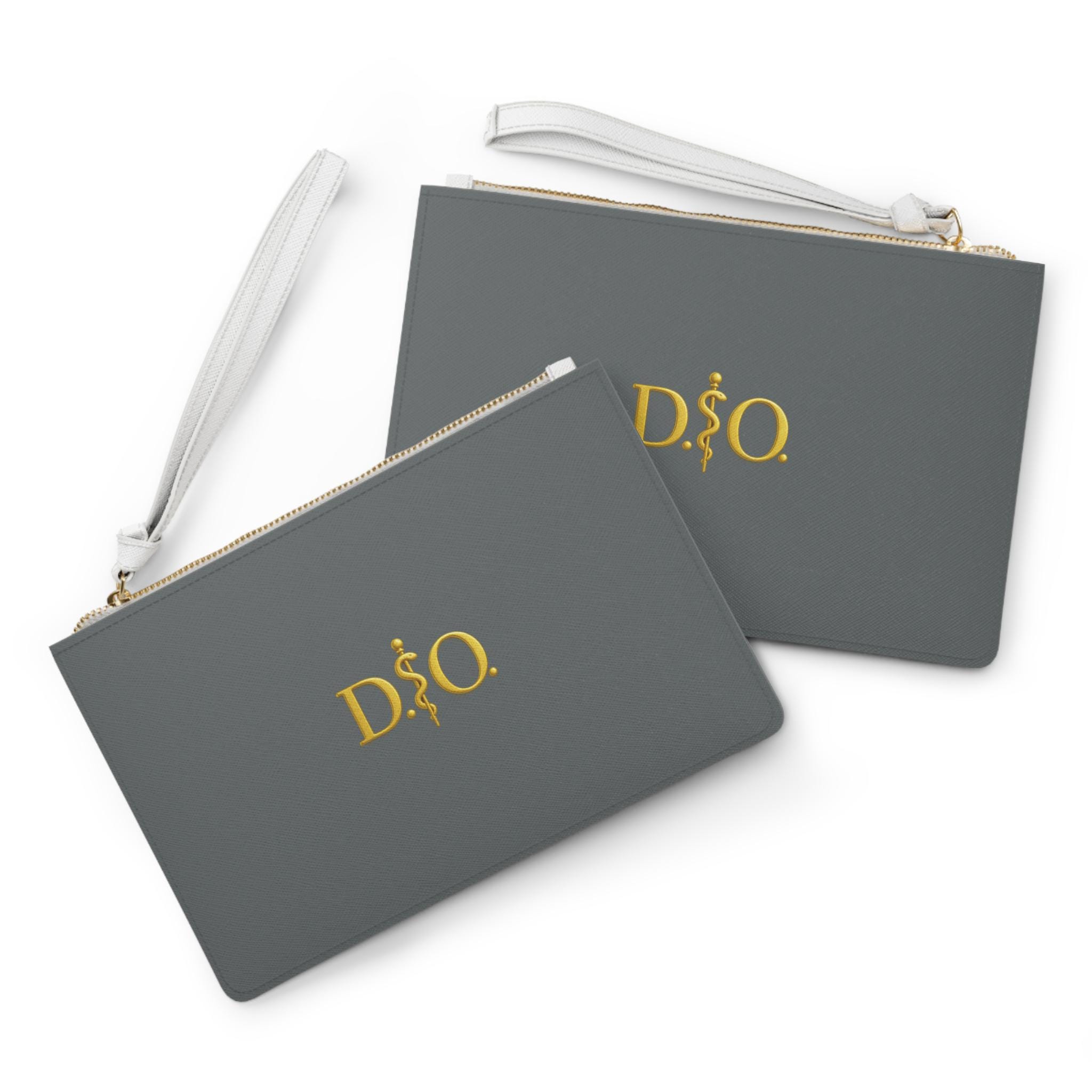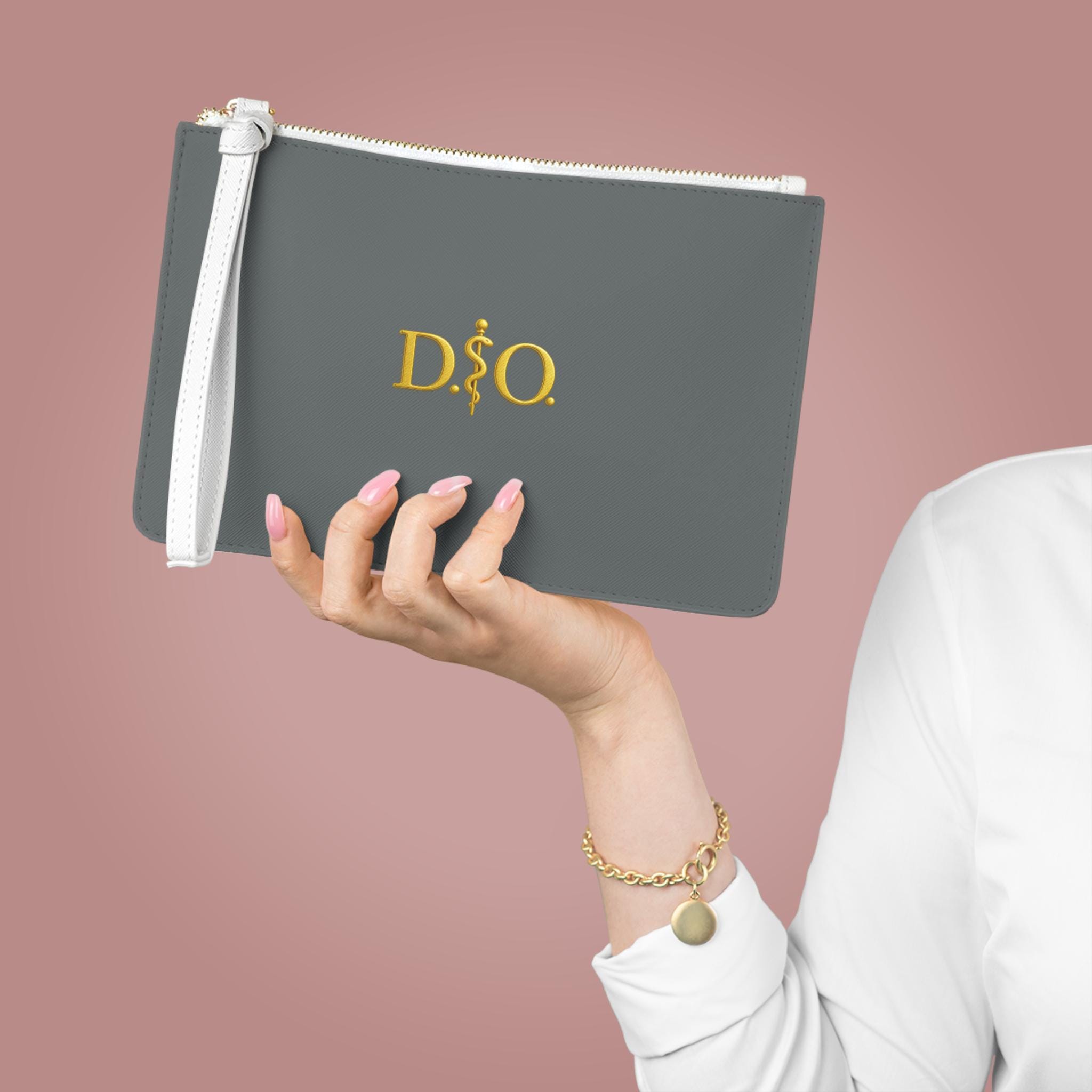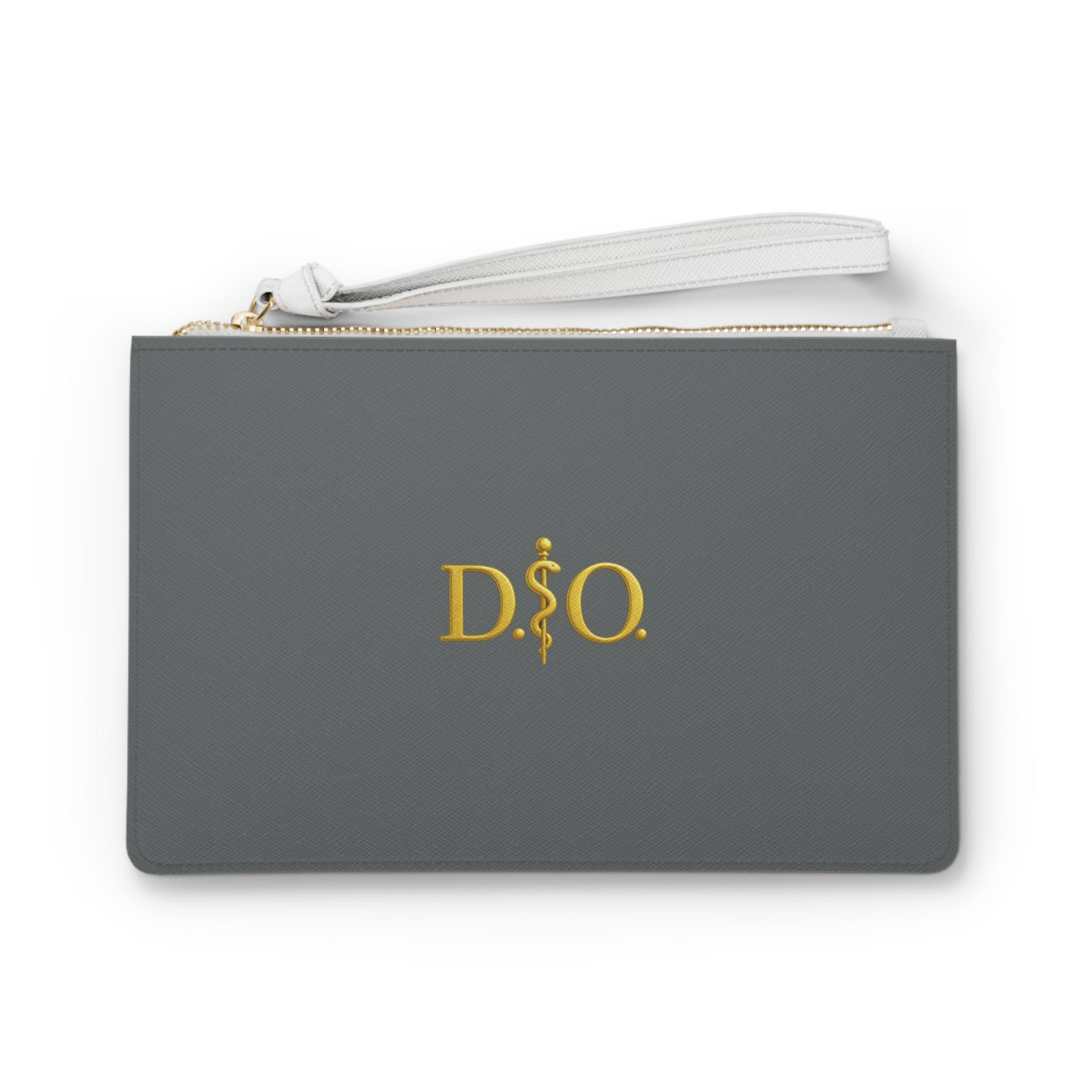 D.O. Rod of Asclepius Osteopathic Emblem Clutch Bag | Gold Medical Design Grey Zip Wristlet