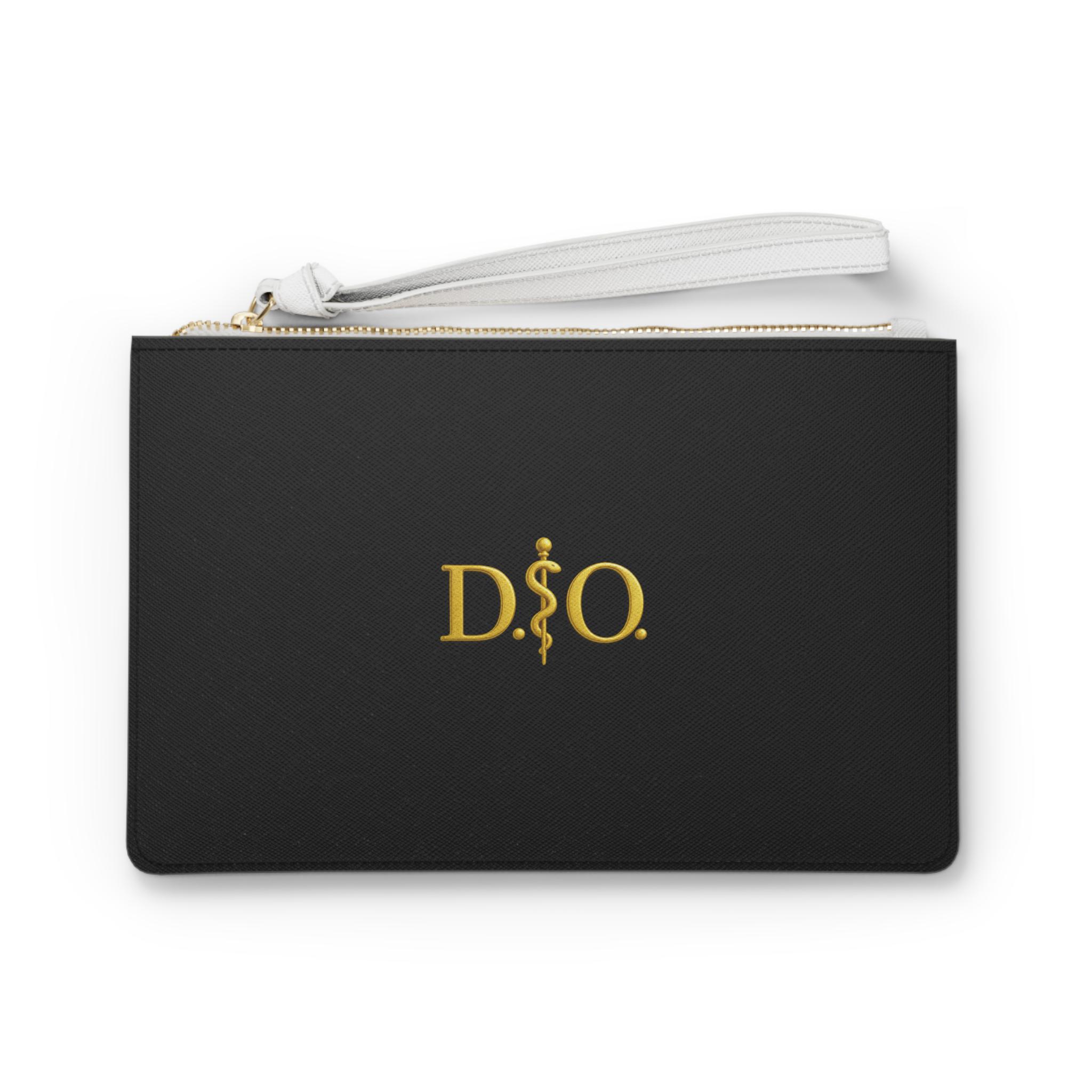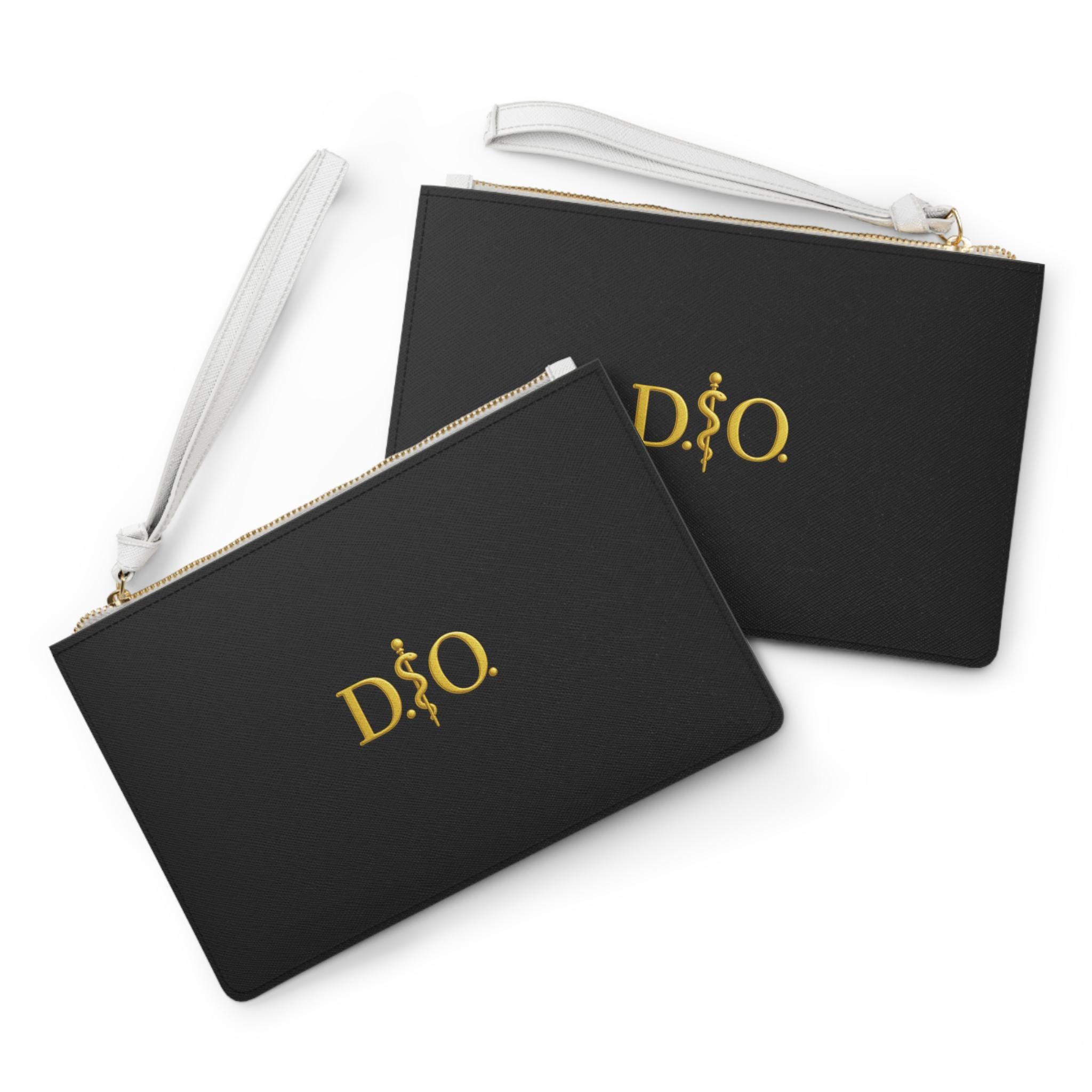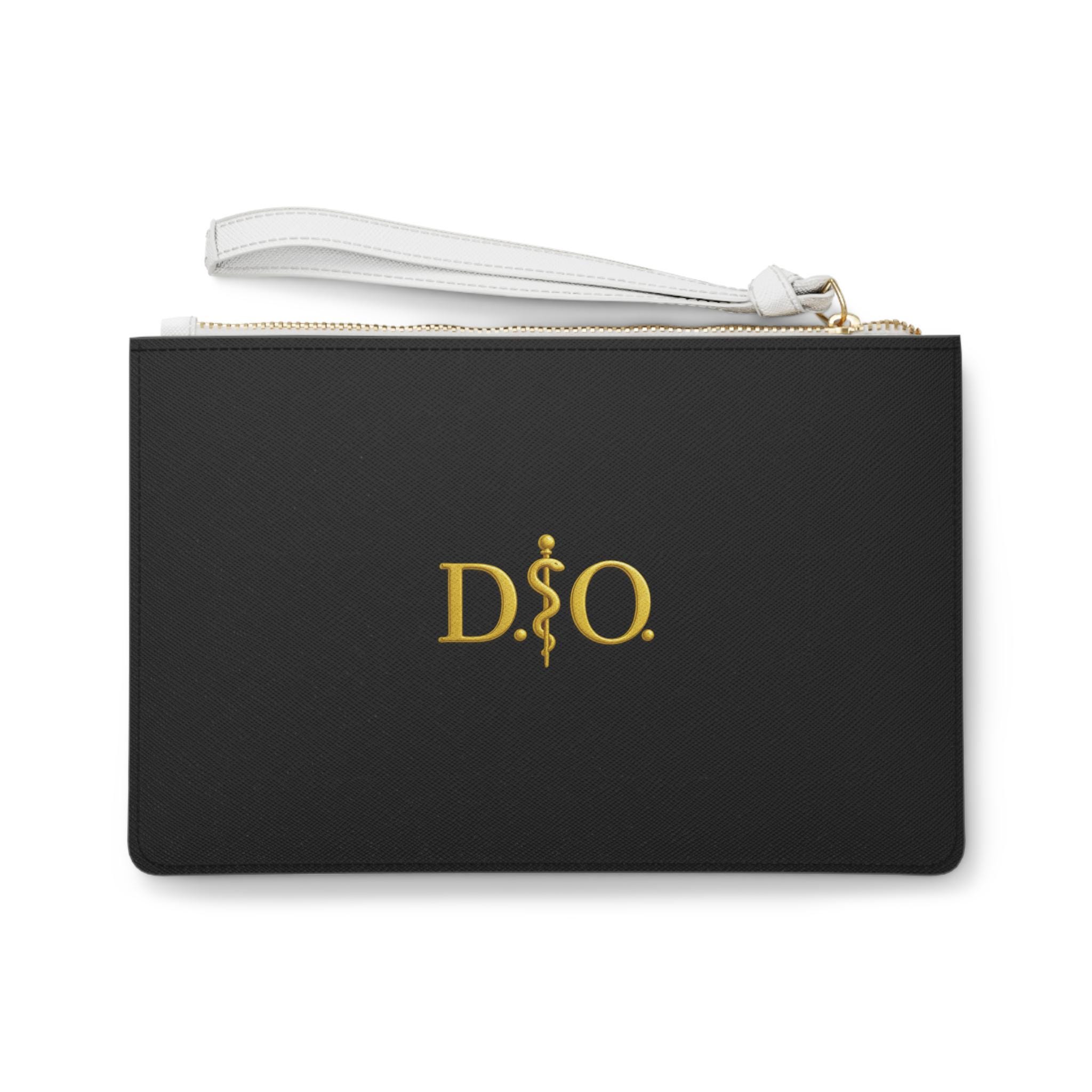 D.O. Rod of Asclepius Osteopathic Emblem Clutch Bag | Gold Medical Design Black Zip Wristlet