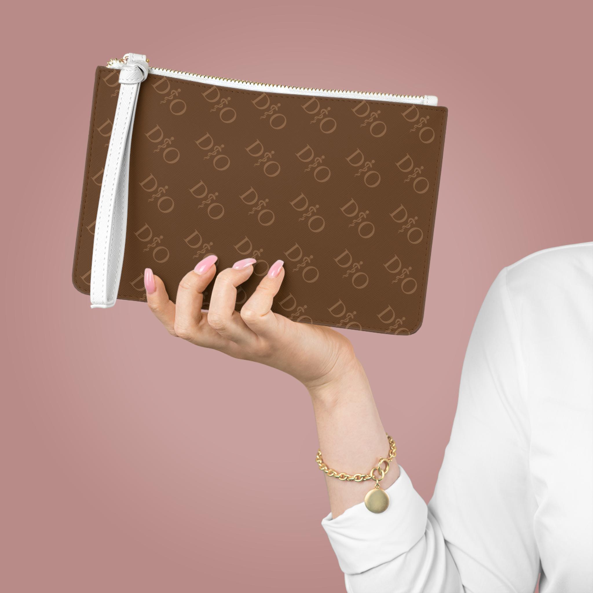 D.O. Rod of Asclepius Osteopathic Pattern Clutch Bag | Tone on tone Medical Design brown Zip Wristlet