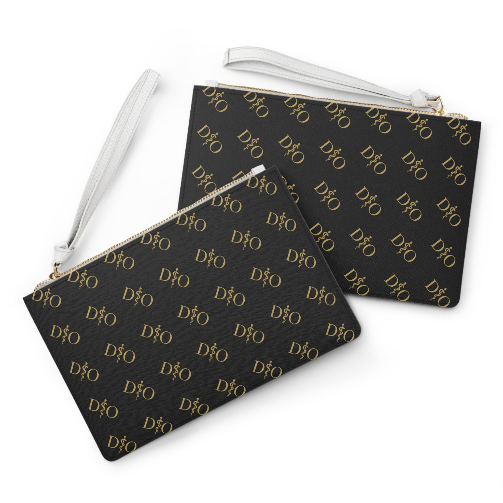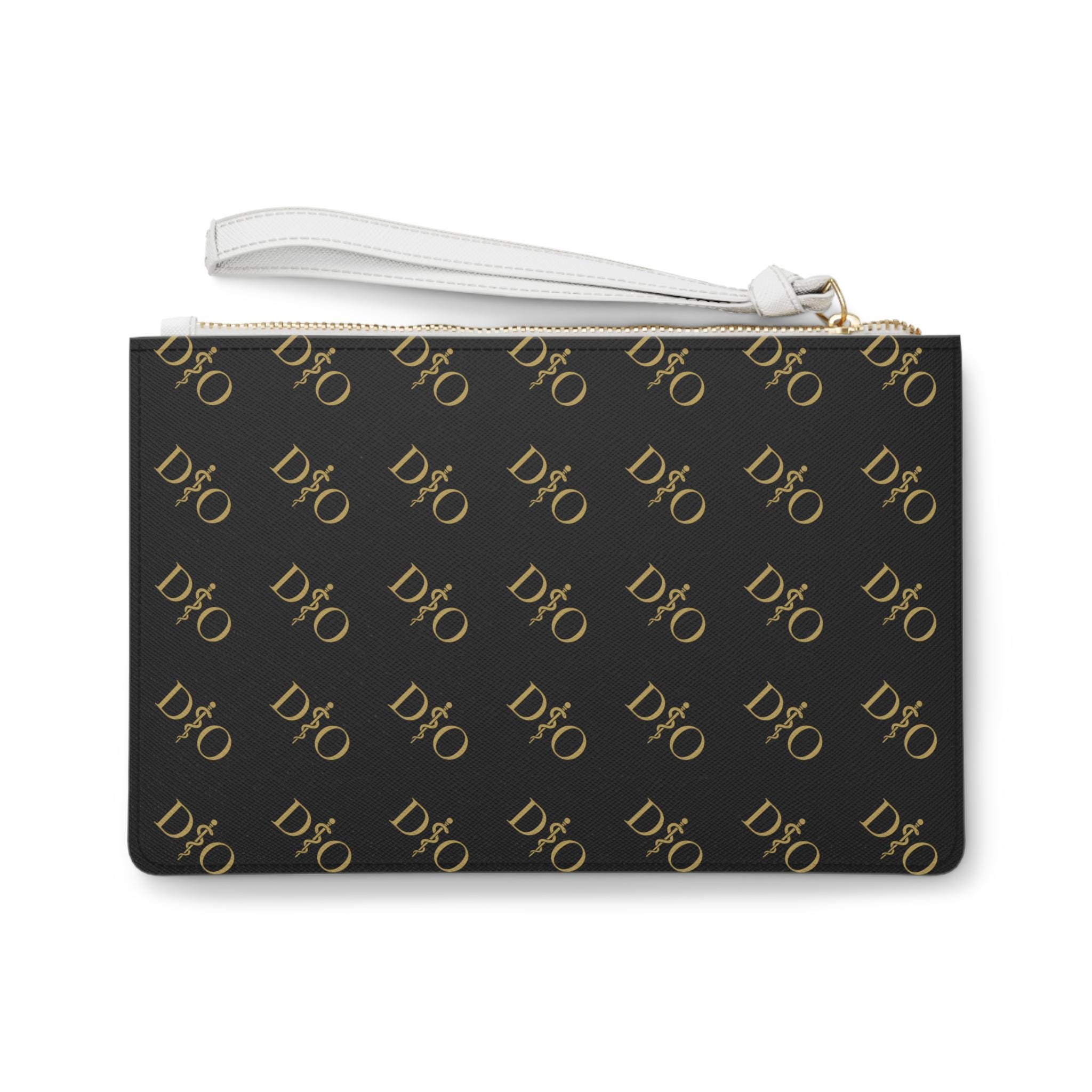D.O. Rod of Asclepius Osteopathic Pattern Clutch Bag | Gold Medical Design Black Zip Wristlet