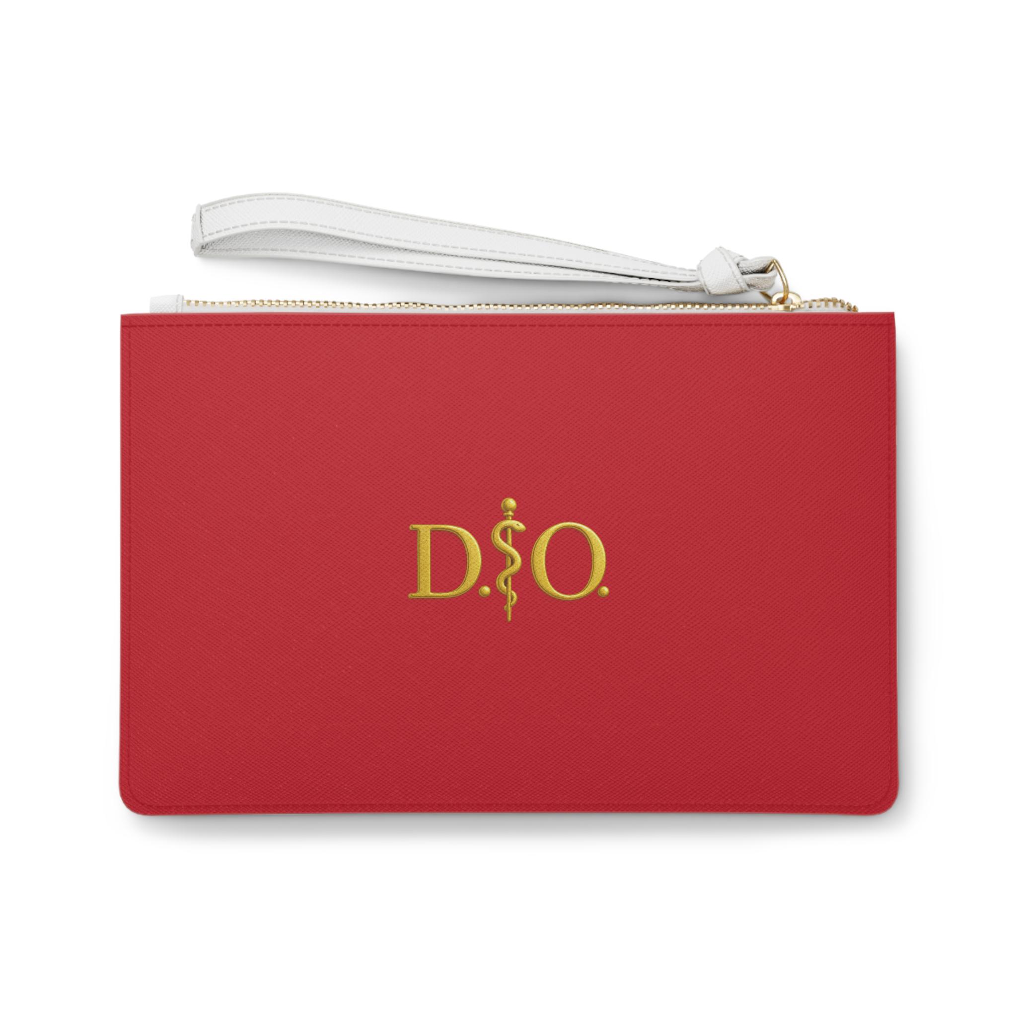 D.O. Rod of Asclepius Osteopathic Emblem Clutch Bag | Gold Medical Design red Zip Wristlet