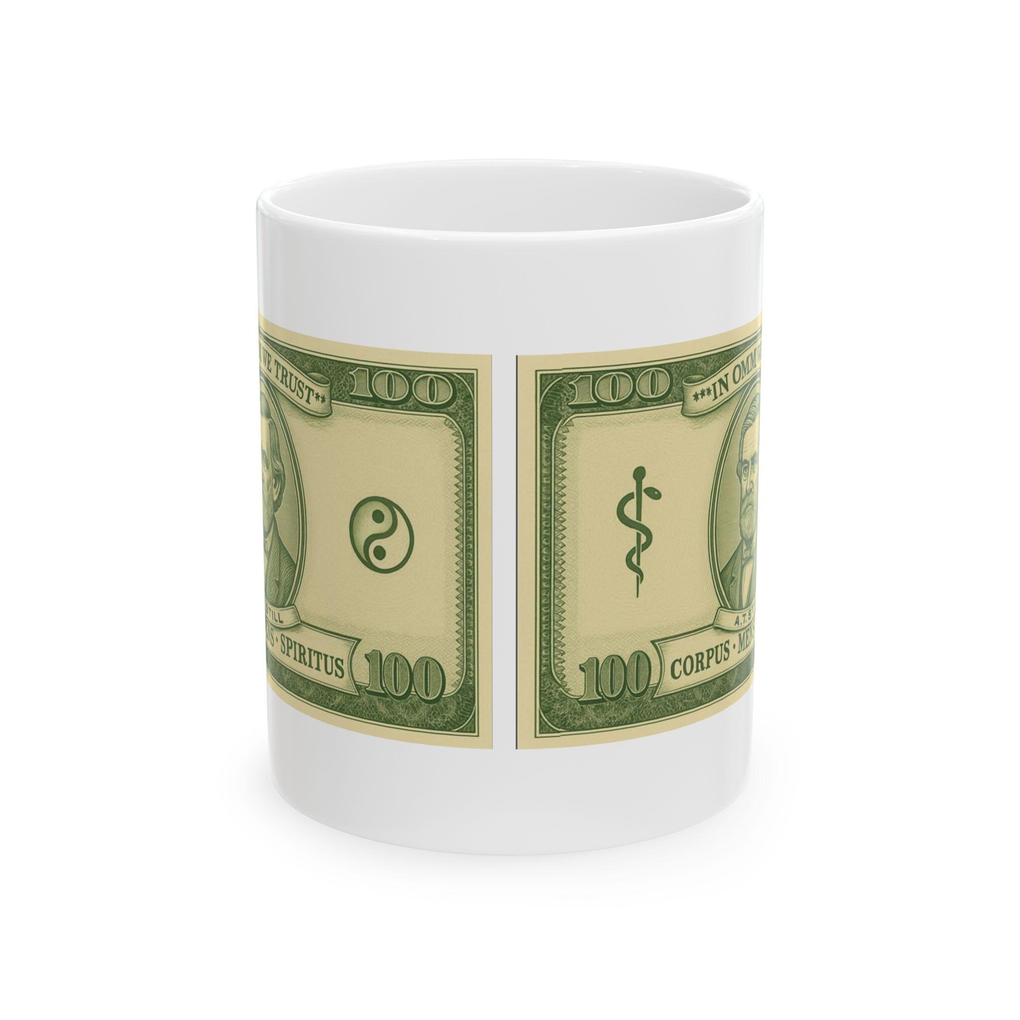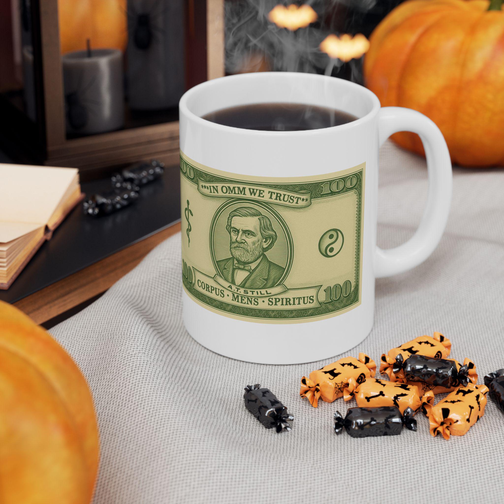 Vintage IN OMM We Trust Dollar Bill Mug | Ceramic Coffee Cup