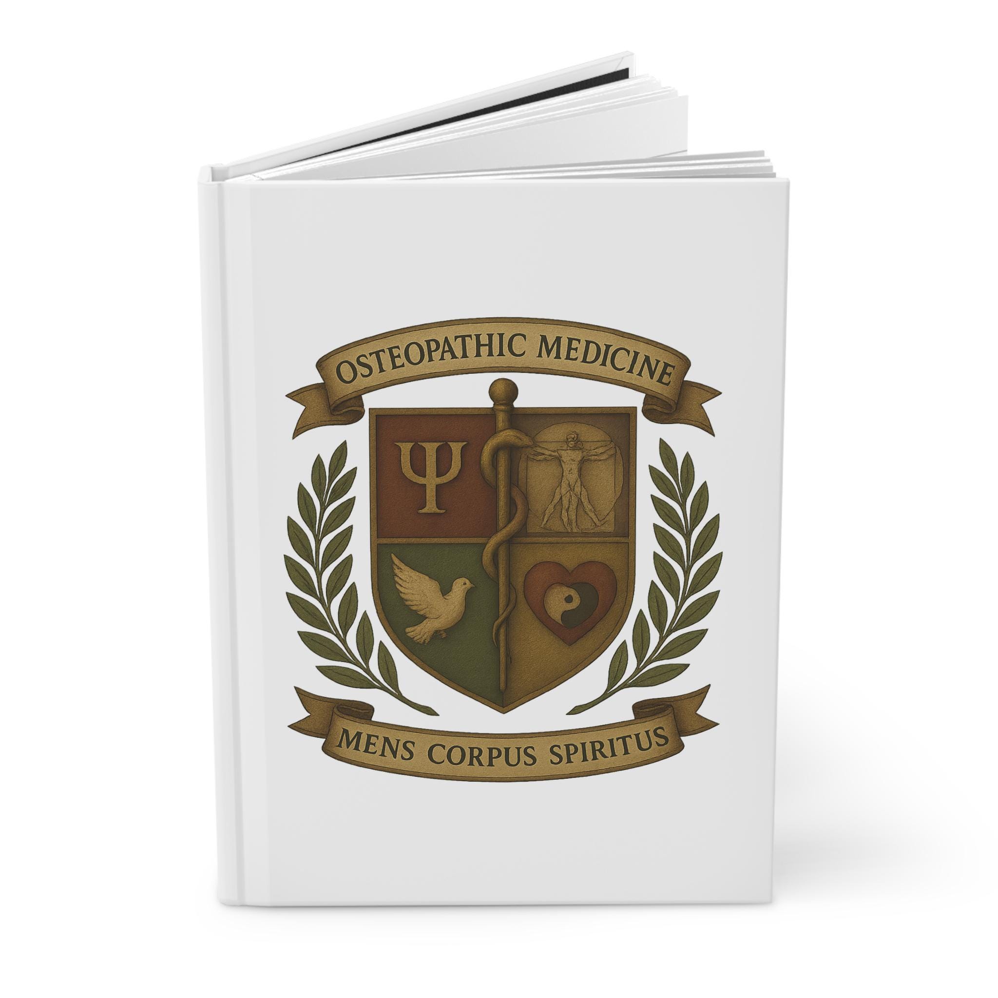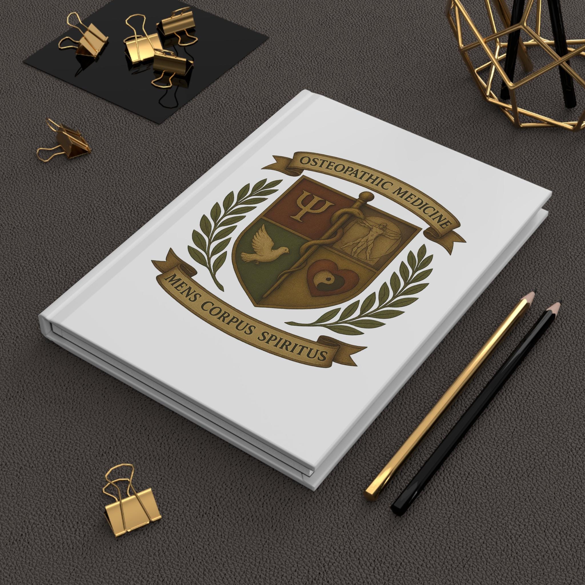 Osteopathic Medicine Crest Hardcover Journal | Mens Corpus Spiritus | White