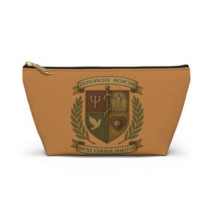 Osteopathic Emblem Clutch Bag | Gold Medical Design White Zip Wristlet