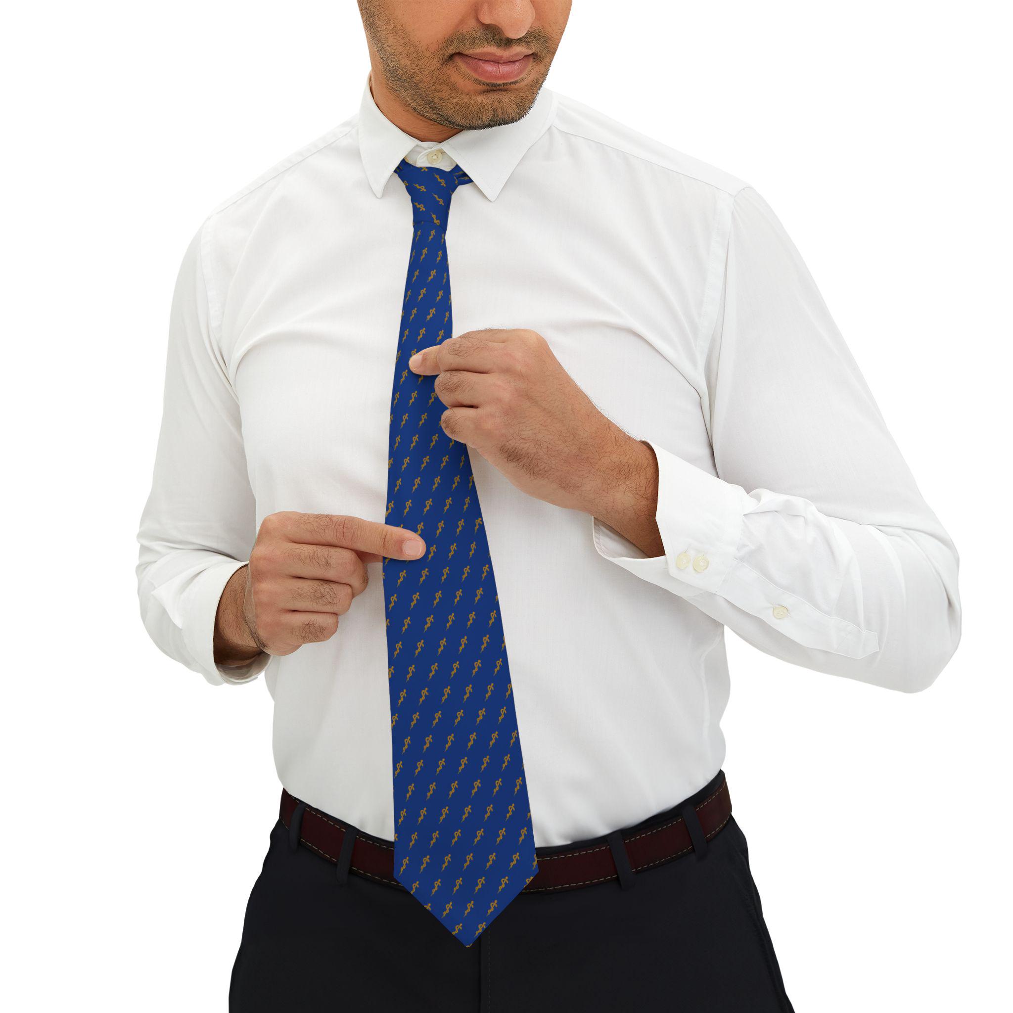 Osteopathic Medical Symbol Doctor Tie gold on blue Asclepius pattern
