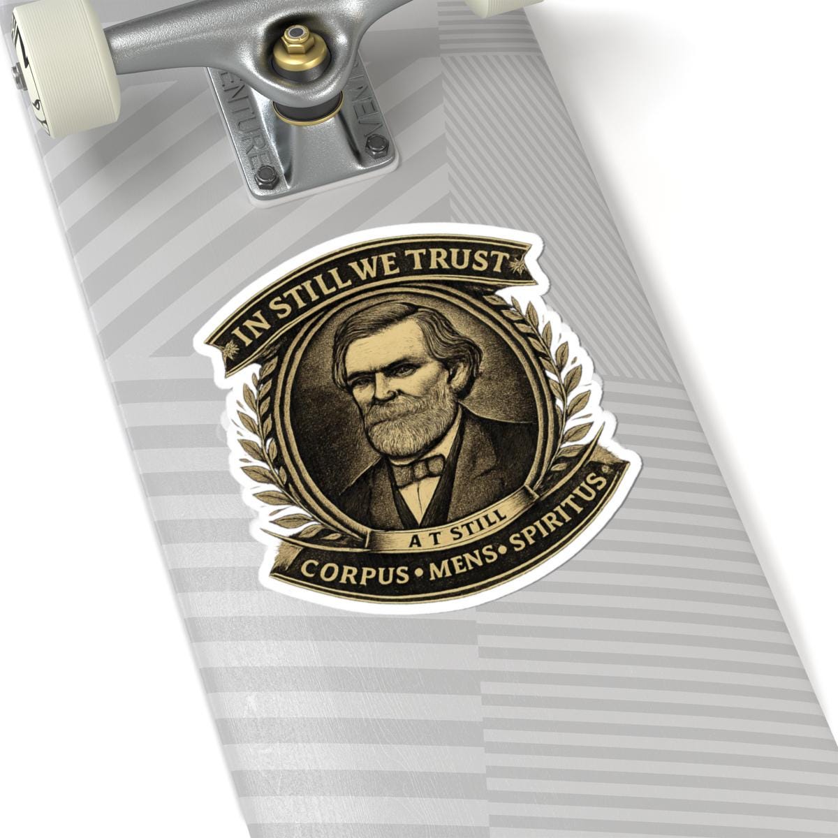 This vintage-style kiss-cut sticker brings old-world charm to everyday belongings. Rendered in rich sepia tones with a dignified portrait framed by laurel leaves and classical banners, it reads like a tiny, weathered medallion. The glossy finish makes the intricate linework and typography pop while preserving a tactile, collectors‑badge feel. Stick it on laptops, journals, sketchbooks, or a display board to add a quiet, scholarly accent that sparks conversation and lends a sense of history to your space.