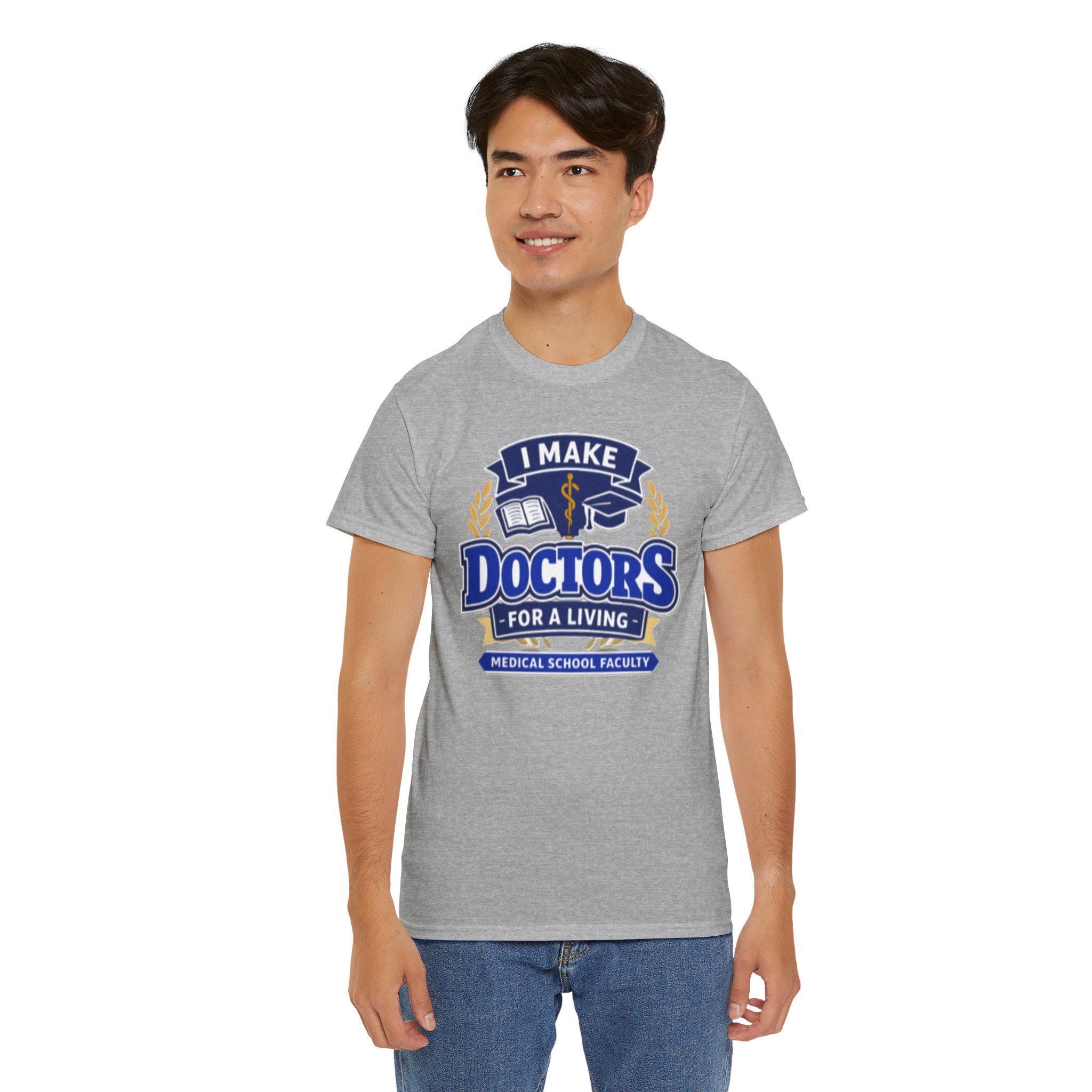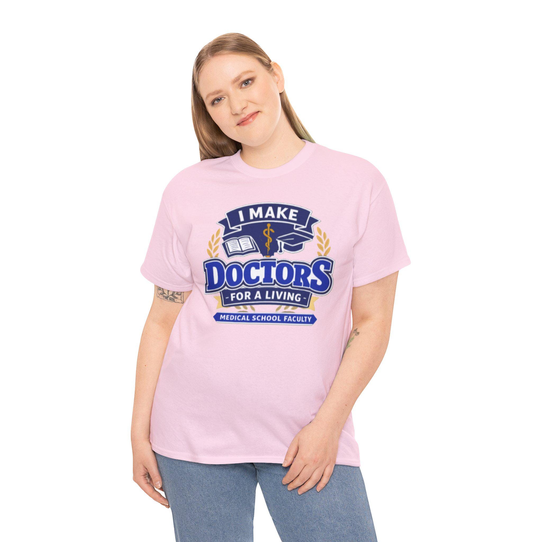 This soft, classic crewneck tee layers into everyday life with quiet confidence. The midweight cotton holds a vibrant, medical-school-faculty themed print on the chest — a nod to teachers, mentors, and clinicians who shape future doctors. It feels sturdy without being stiff, sits relaxed across the shoulders thanks to shoulder-tape reinforcement, and keeps its shape with a ribbed, seam-free collar. Wear it between rounds, during lectures, or on casual days at the clinic to show pride without shouting. The tear-away label and smooth, high-quality fabric make it comfortable for long shifts and repeat wears. Subtle natural flecks appear on the unprocessed Natural color for a lived-in, authentic look.