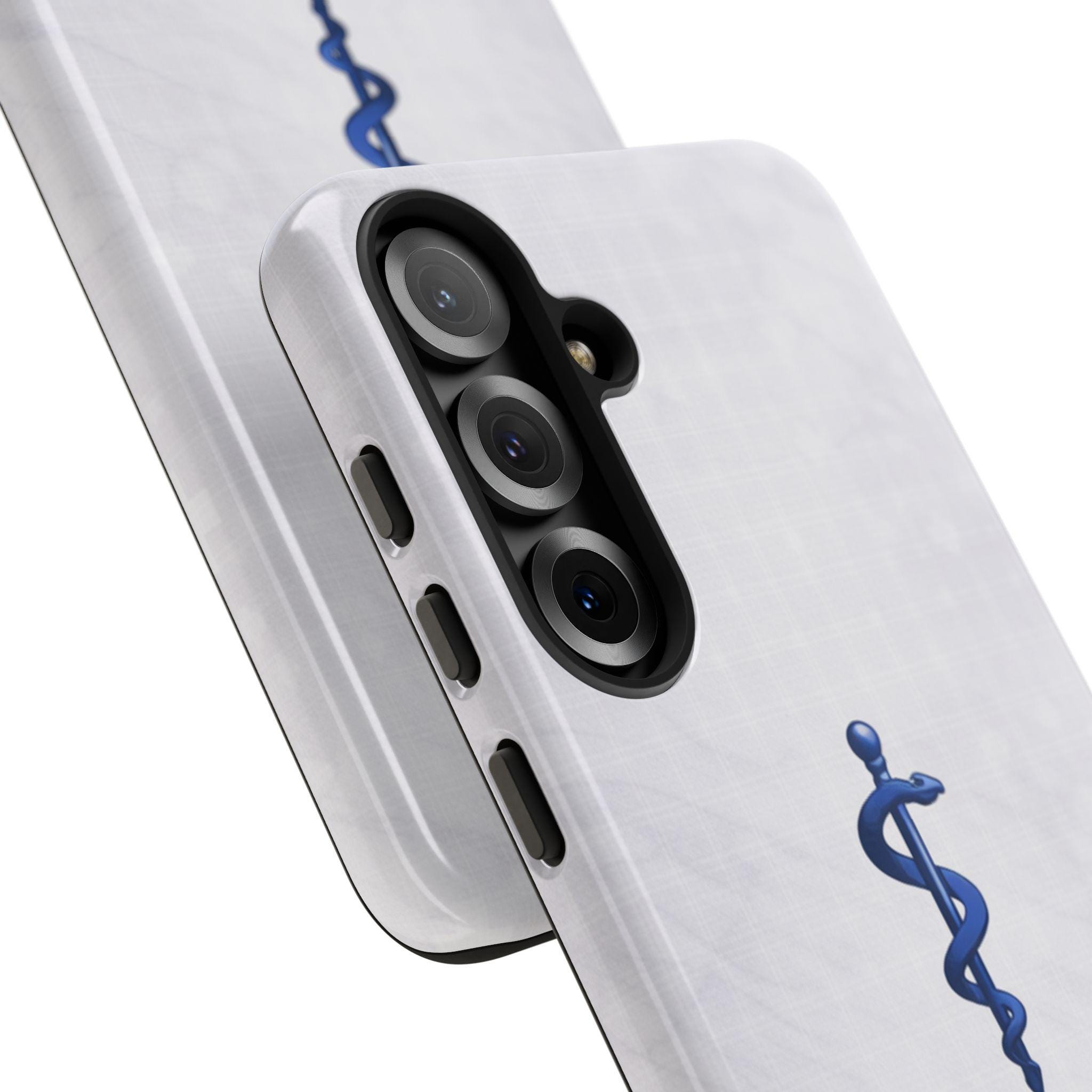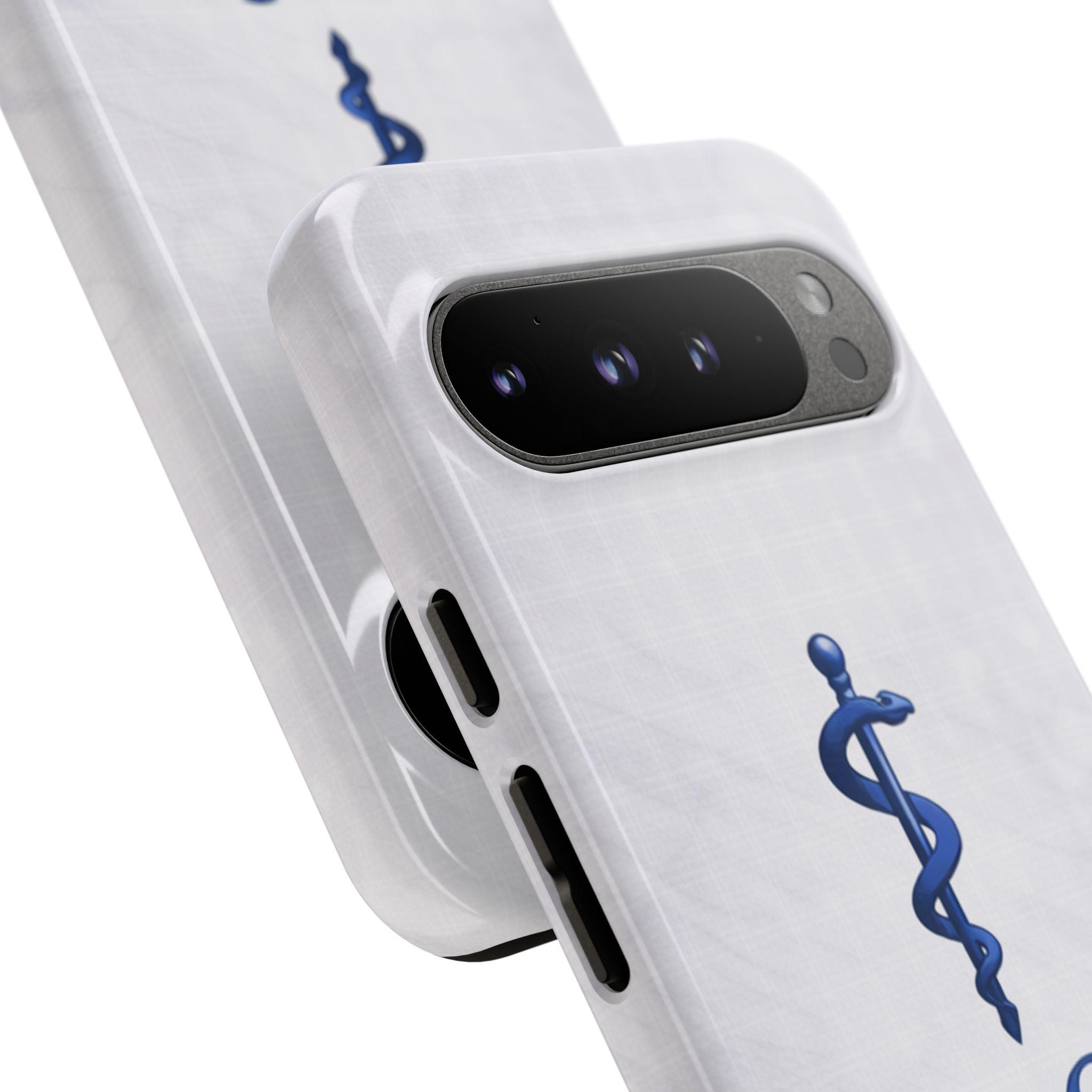 A protective phone case that blends professional pride with blue futuristic style. The dual-layer shell pairs a rigid polycarbonate exterior with a TPU silicone liner to absorb shocks and guard against drops, while a full 3D-wrap print keeps the delicate marble, floral accents, and gold caduceus motif vibrant. Lightweight and slim, it keeps ports open and supports wireless charging, so everyday use stays effortless. UV protection and certified materials mean the look holds up through daily wear when handled according to care notes. This case feels like a thoughtful accessory for clinicians who want a polished, personal touch on the job and beyond.