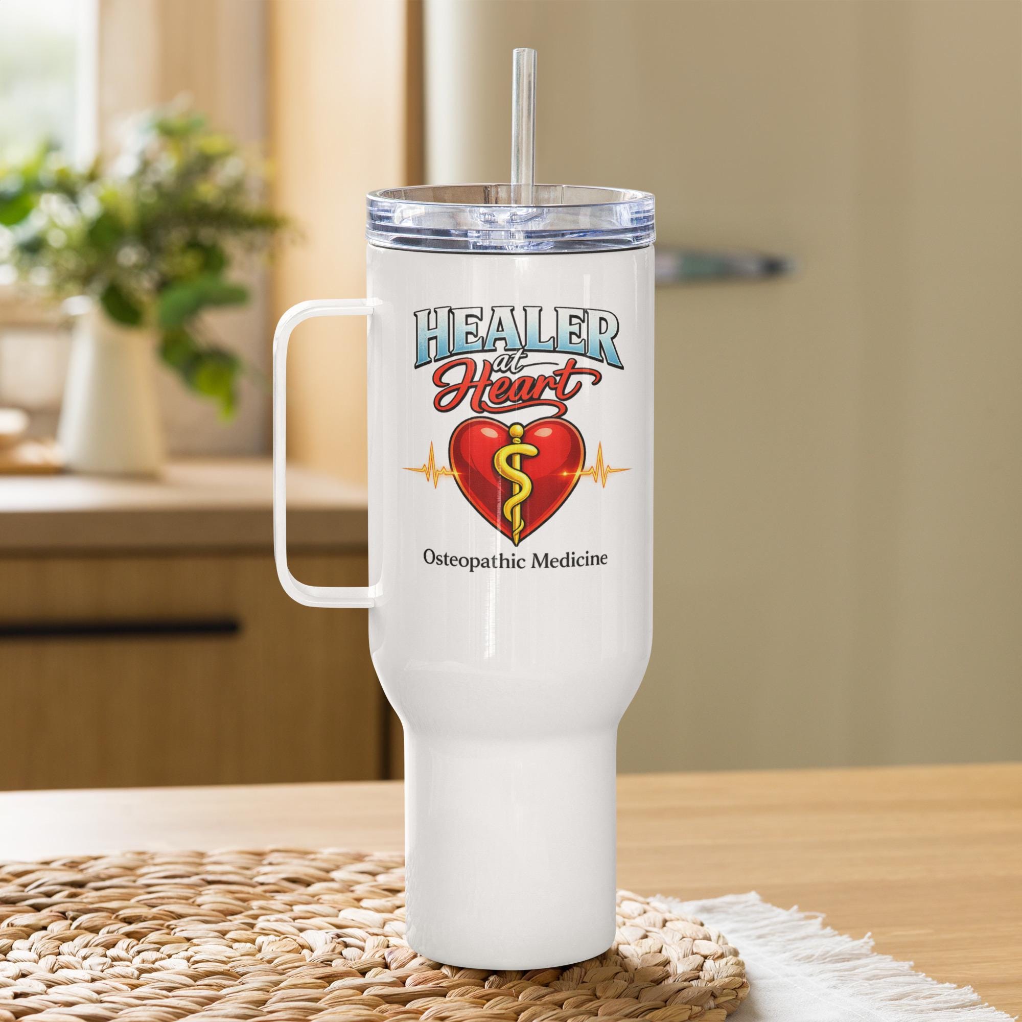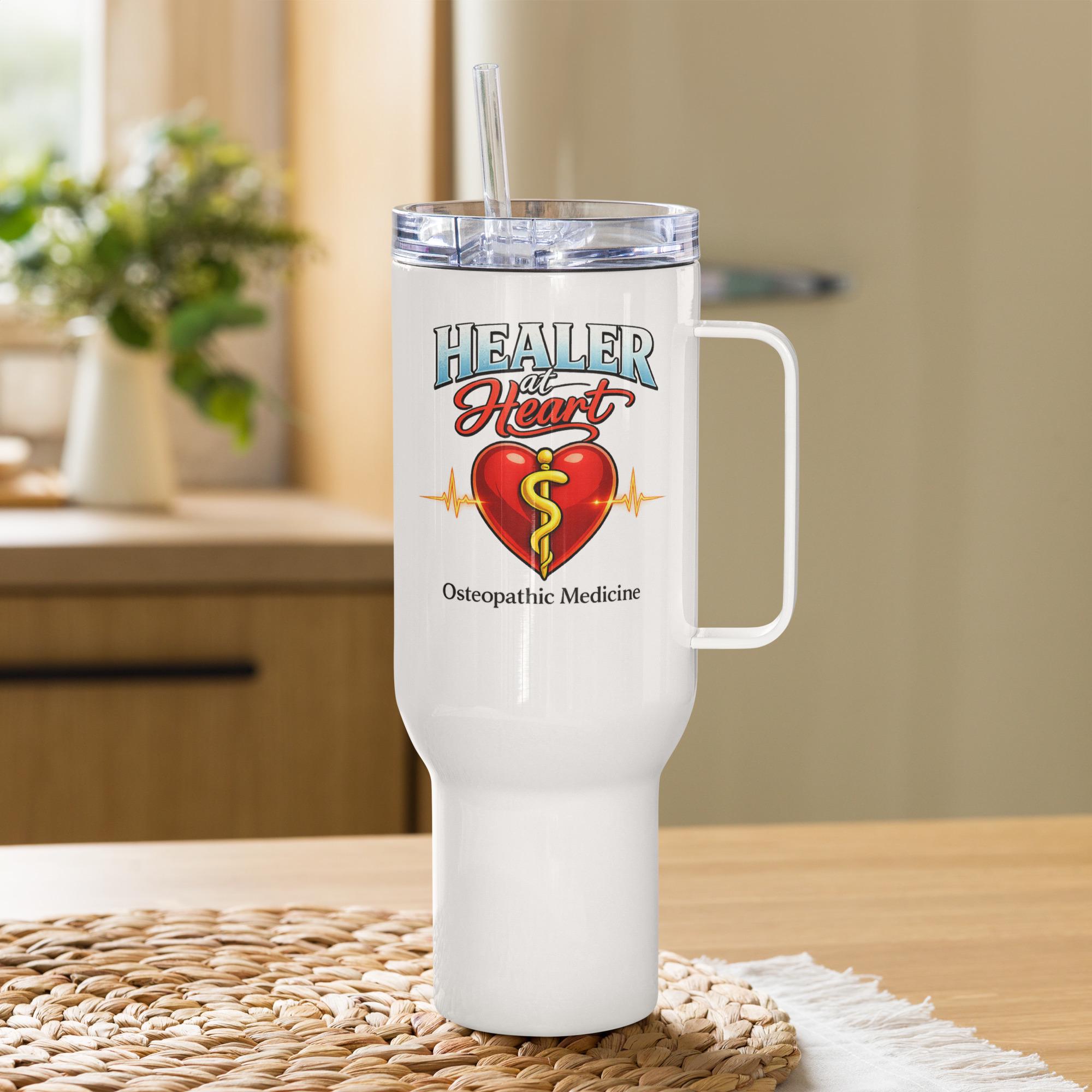 Healer at Heart Osteopathic Travel mug with a handle