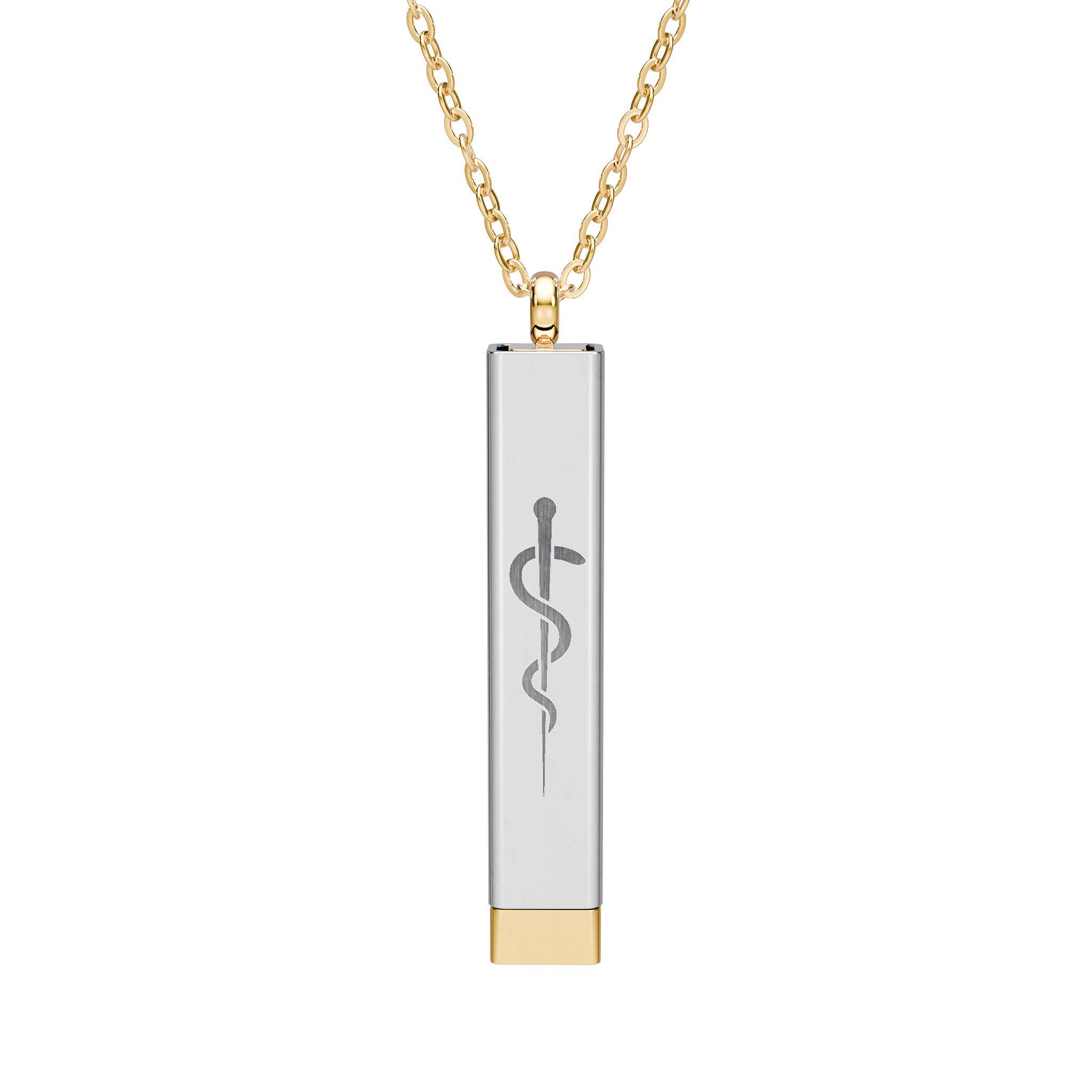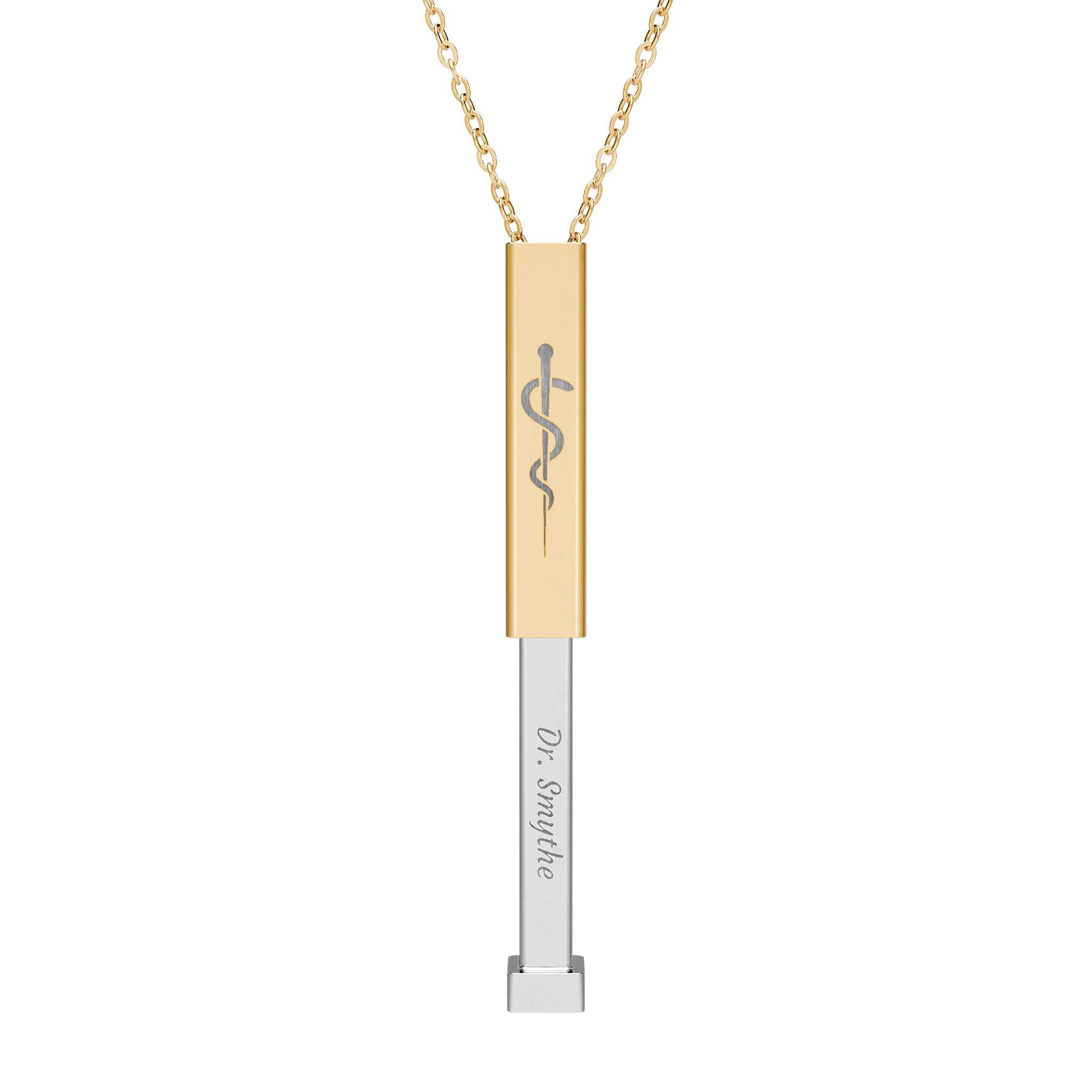 Personalized Medical Rod of Asclepius Sliding Bar Necklace