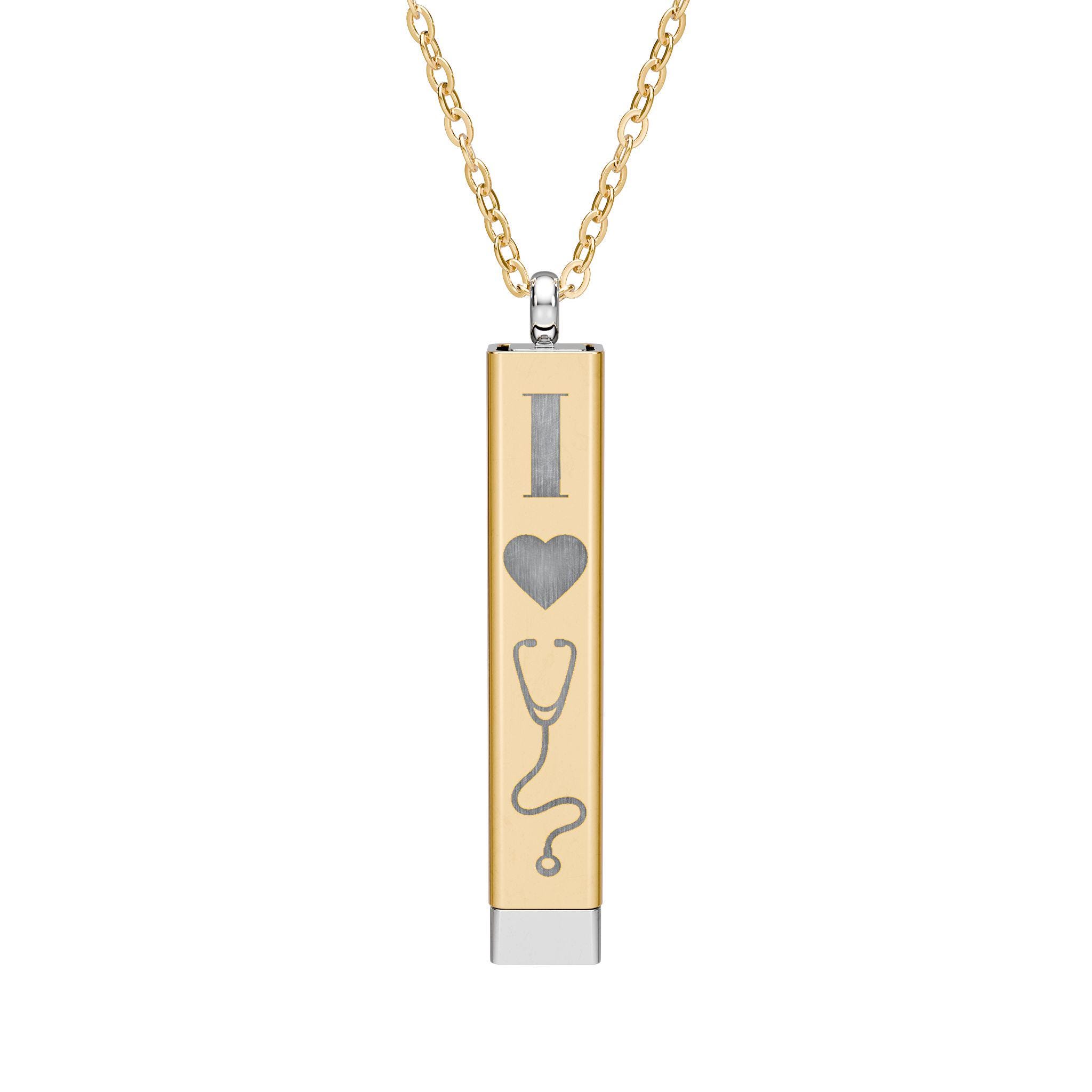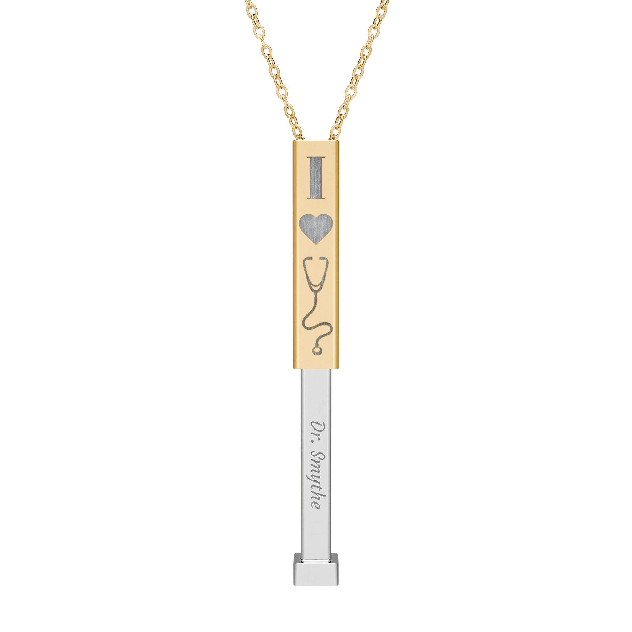 Personalized I heart Medical Stethoscope Sliding Bar Necklace