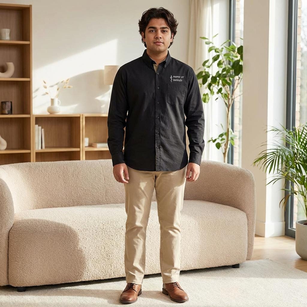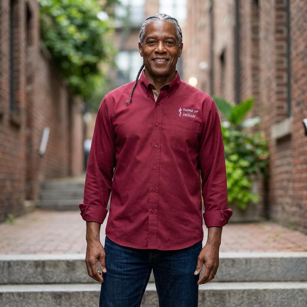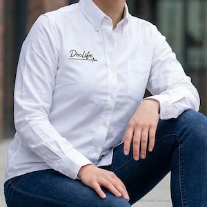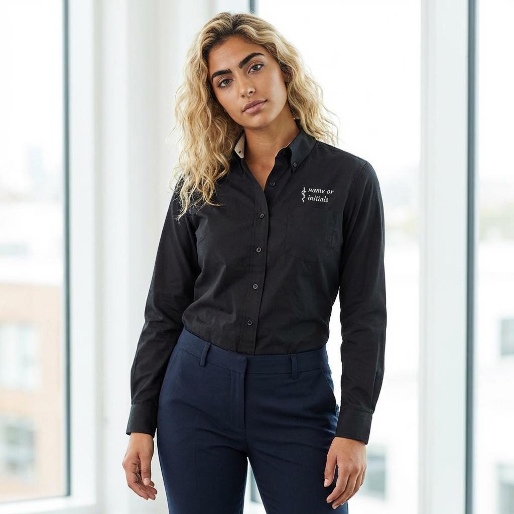 Soft, professional, and high-end brand — this embroidered long sleeve brings your osteopathic identity into everyday wear. The lightweight fabric moves with you during rounds, clinics, or study sessions, while the subtle Rod of Asclepius on the chest pocket speaks to your training without shouting. Tailored details like a button-down collar, dyed-to-match buttons, and adjustable cuffs keep the silhouette tidy under a lab coat or on its own. It’s the kind of shirt you reach for when you want to look composed, feel comfortable, and carry a small, meaningful emblem of your work with you.