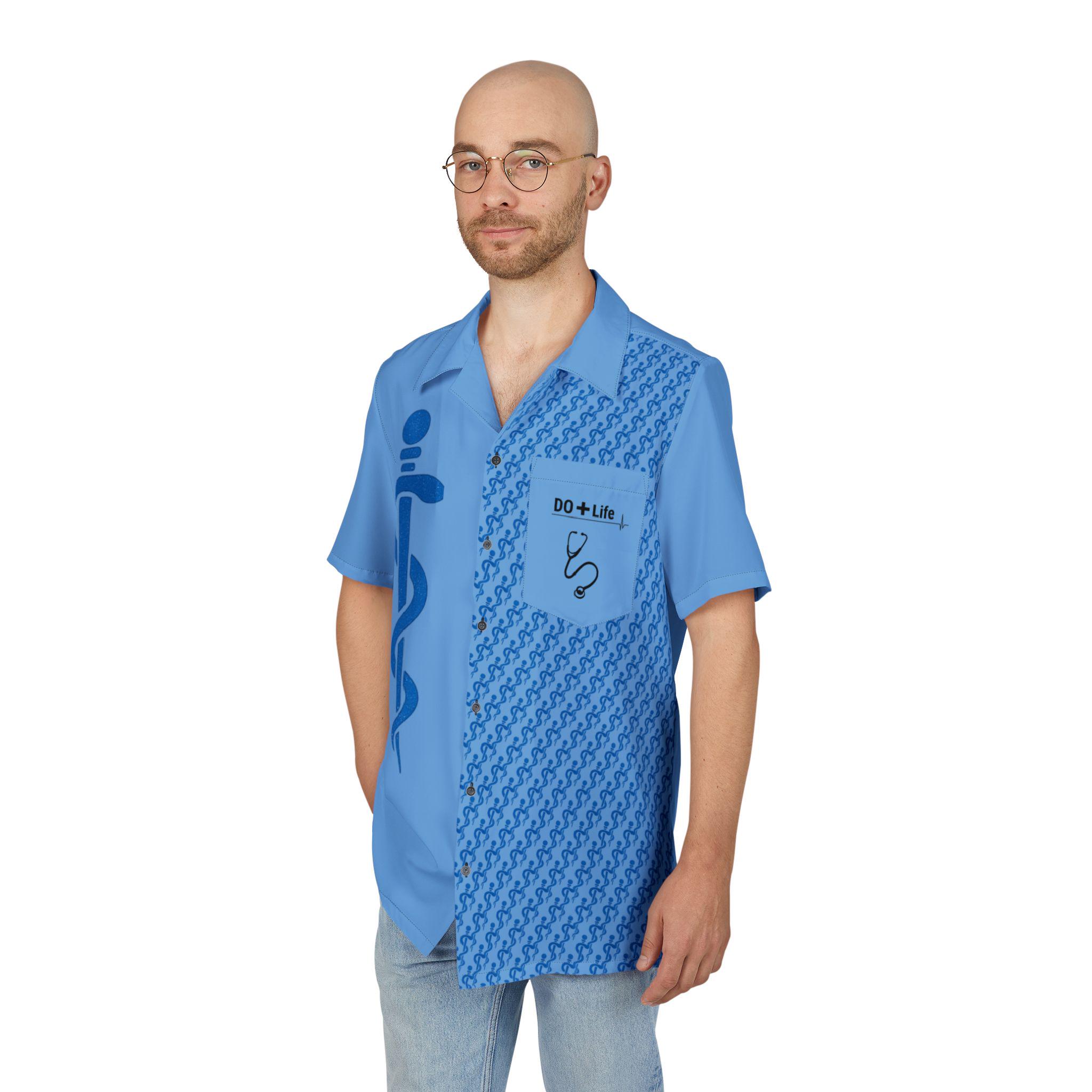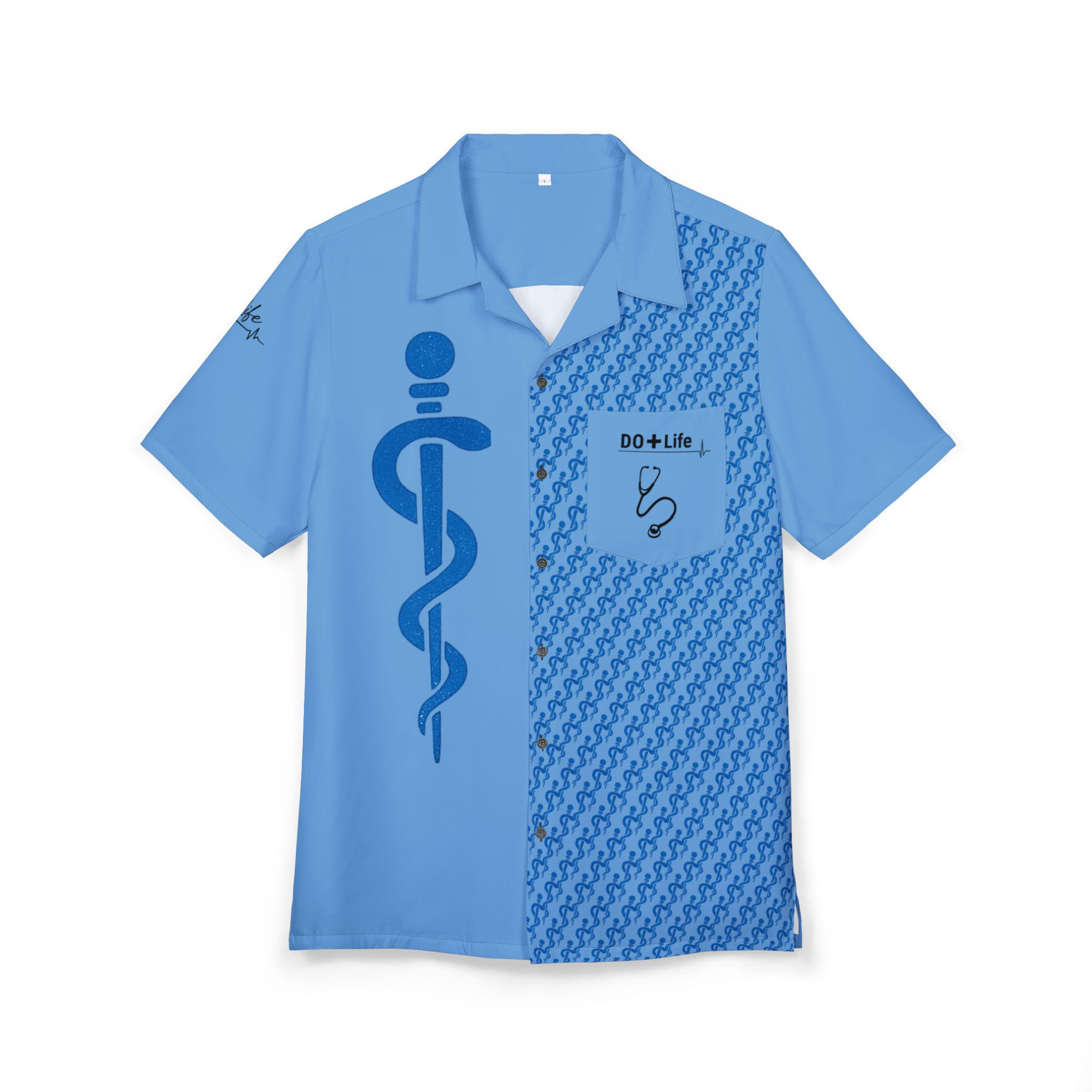Wear a little professional pride with a laid-back island twist. This Hawaiian-style shirt wears an osteopathic emblem across a vibrant all-over print, blending medical identity with sunny, coastal energy. Lightweight and slightly stretchy, it moves with you—whether you’re stepping out after rounds, catching a sunset with colleagues, or wearing something relaxed to a conference social. The structured collar and placket keep the silhouette tidy when you want to look composed. Choose black or white buttons matched to the seams for a subtle, finished look. Each shirt is carefully assembled in the USA from globally sourced parts and carries a sewn-in label for lasting quality. It settles into everyday life: a conversation-starter at meetups, a comfortable layer for long shifts, or a familiar piece to wear at reunions and gatherings of peers.